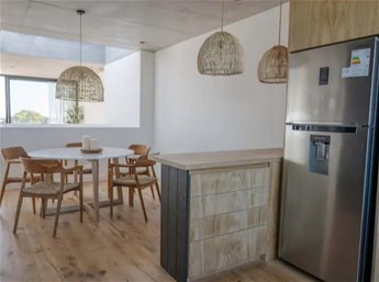 Precioso departamento duplex en centro de Manantiales, con vista a playa Bikini. Distribuido en dos plantas; planta baja, 2 dormitorios, (1 en suite amplia), y segundo dormitorio, con capacidad para 3 camas. Planta alta; living con salida a terraza con vista al mar. Comedor y cocina integrada, lavadero. Departamento muy lindo decorado y muy iluminado.