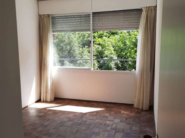 Ubicación en el Centro de Pocitos, a 3 cuadras de la Rambla, a mano de todos los servicios, Locomoción, Supermercado, ect. Al frente, Living-comedor, pisos de madera, en toda la unidad, 2 dormitorios con placares, 1 baño completoCocina cómoda con placares, terraza lavadero. Garaje para 1 auto, Porteria con horario, y virtual las 24 horas. Calefacción por losa radiante central.Muy agradable e iluminado. Orientacion con todo el sol a la tarde.