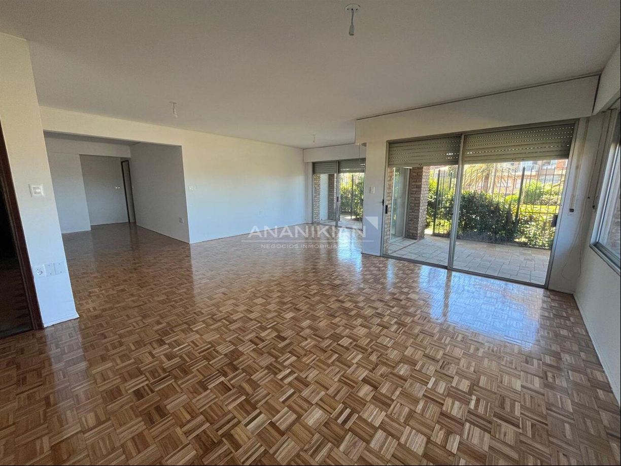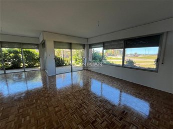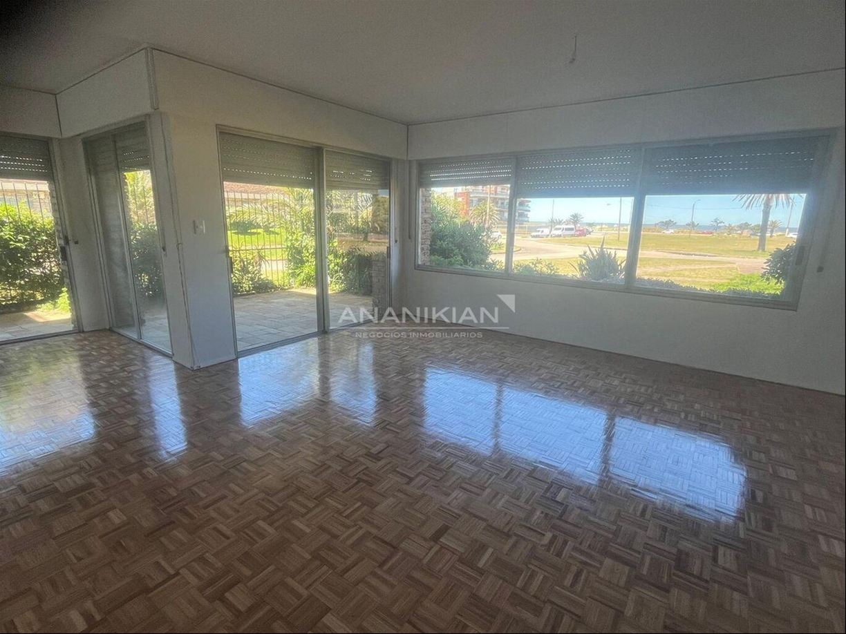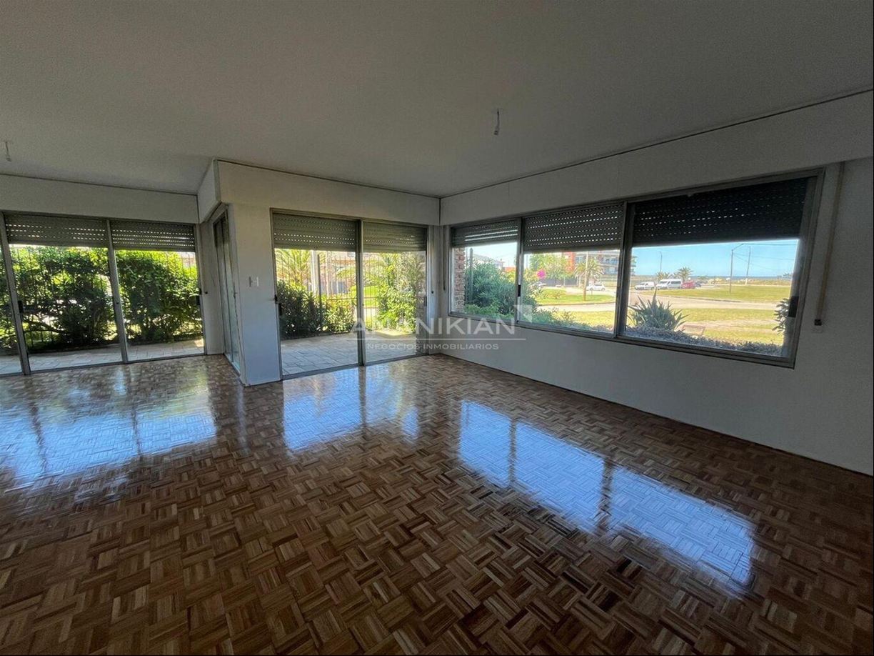 Apartamento con hermosas vistas, a pocos pasos de la Rambla. Sobre la calle Ferrari con vista despejada hacia el mar Edificio de 3 pisos de gran porte con 2 aptos. por piso Alquiler de 1 semi piso en planta baja Amplio living comedor con grandes ventanales con espectacular vista Sala de estar o comedor diario 3 amplios dormitorios todos exteriores, el principal en suite 1 Baño completo hecho a nuevo Cocina con doble mesada reciclada con buenos placares Lavadero cerrado Servicio completo con baño Jardín pasante de frente a fondo con reja perimetrales Fondo verde de unos 50m2 Calefacción central, servicio de portería y espacio de estacionamiento para un auto. Renovación completa de baños y cocinas. Apartamento tipo casa con mucha seguridad. Nai - 5369