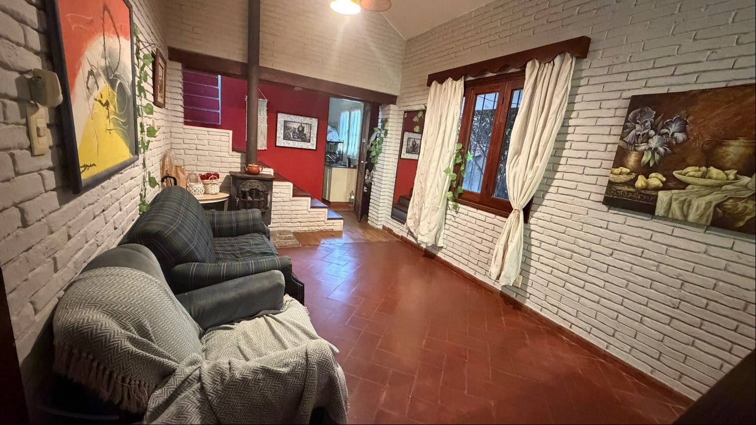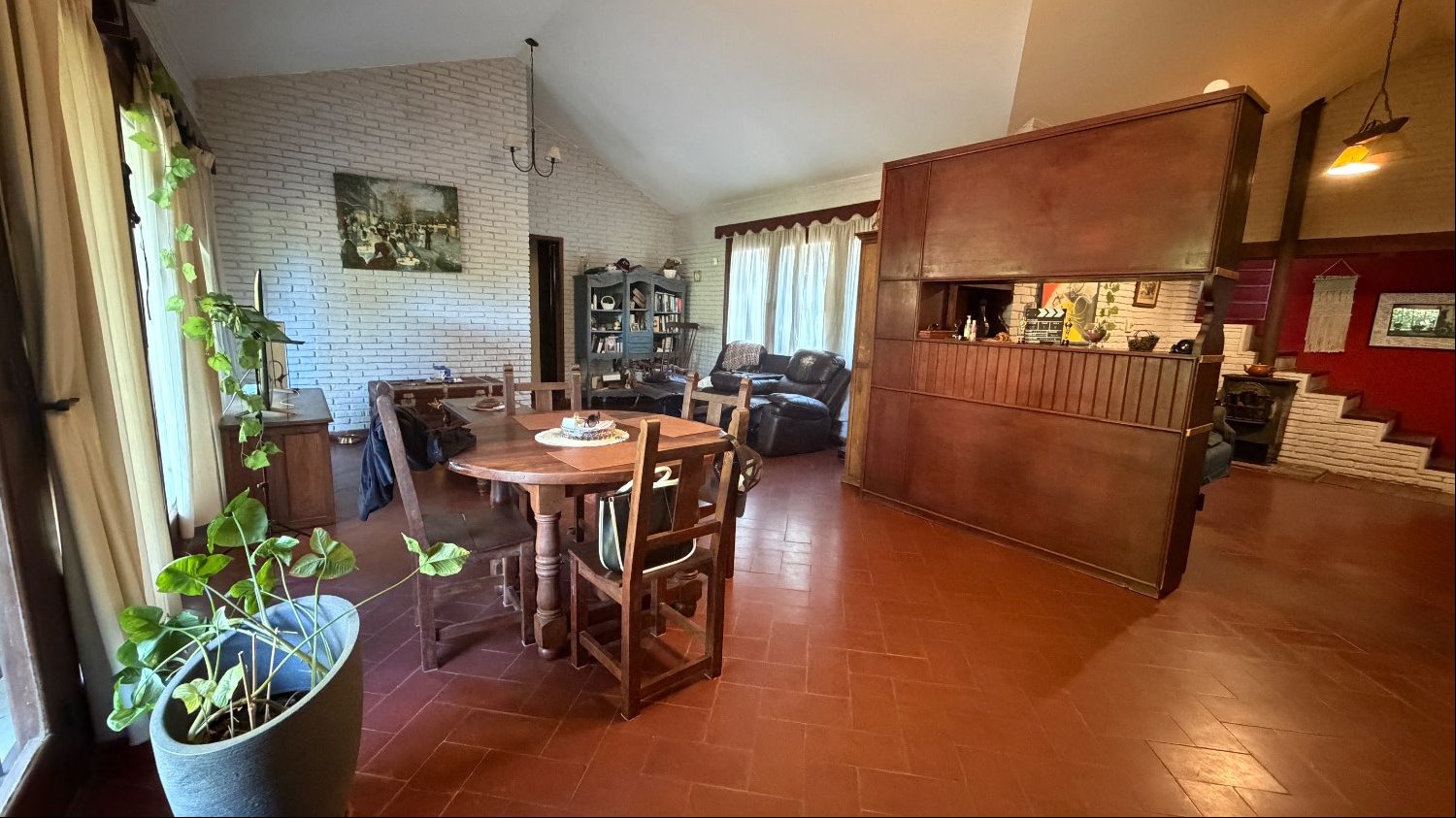 Planta baja. Living-comedor, estar con calefactor a leña, cocina, 2 dormitorios , 2 baños completos.