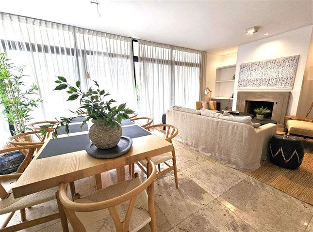 Se trata de una planta dúplex , al ingresar hay una linda recepción, amplio living comedor con estufa a leña grande . Ventanales grandes con salida a balcón con mucho sol todo el dia .