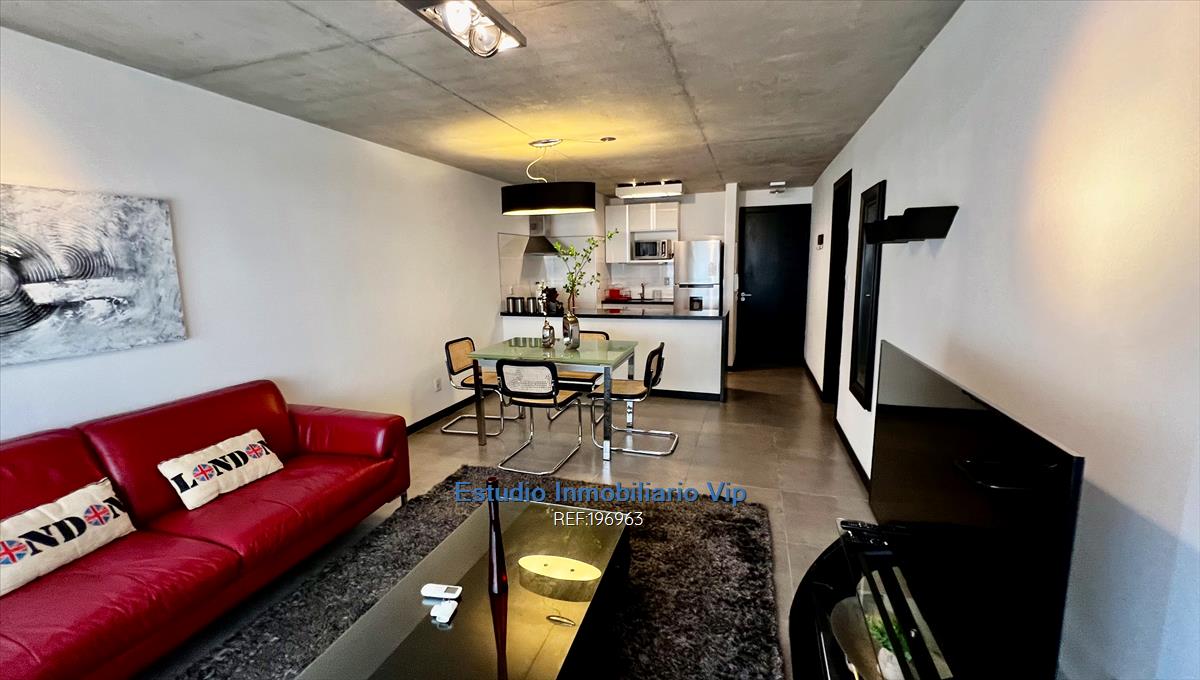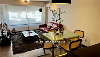 Muy lindo apartamento en excelente complejo a metros del World Trade Center y de Montevideo Shopping.Living comedor amplio con aire acondicionado y cocina americana, 1 dormitorio cómodo con placar y baño completo.Placard de apoyo en corredor. Calefacción individual eurocable.Muy bien equipado.El edificio tiene piscina y barbacoas abiertas.Vigilancia 24 horas.Opción garage