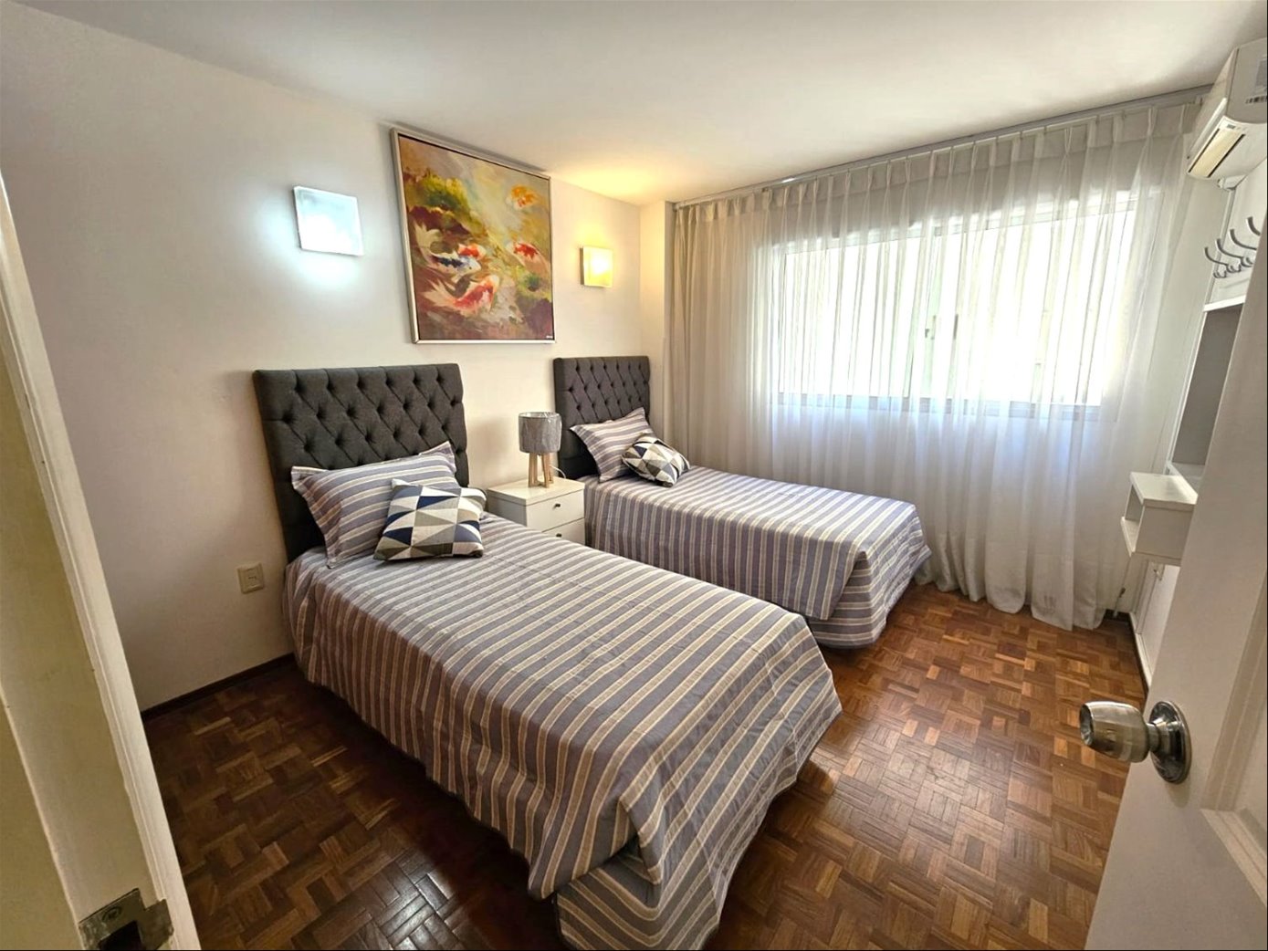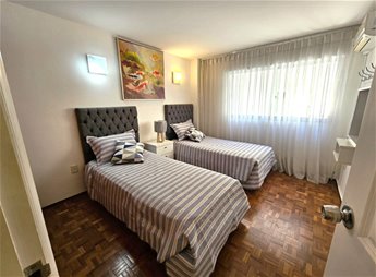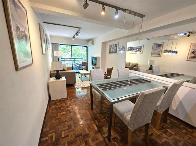 Hermoso apartamento completamente amoblado de 2 dormitorios, 1 baño completo, 1 baño social, cómodo living comedor con terraza. Cocina definida, terraza lavadero. Piso intermedio con muy buena vista y luminosidad. Aire acondicionado en todos los ambientes. 1 lugar de Garage Excelente ubicación en pleno Pocitos sobre Av. Brasil, con todos los comercios y servicios a mano.Gastos comunes $ 9.000 todo el año con vigilancia presencial con horario. 2 ascensores. Amenities del edificio: gimnasio y jacuzzi.