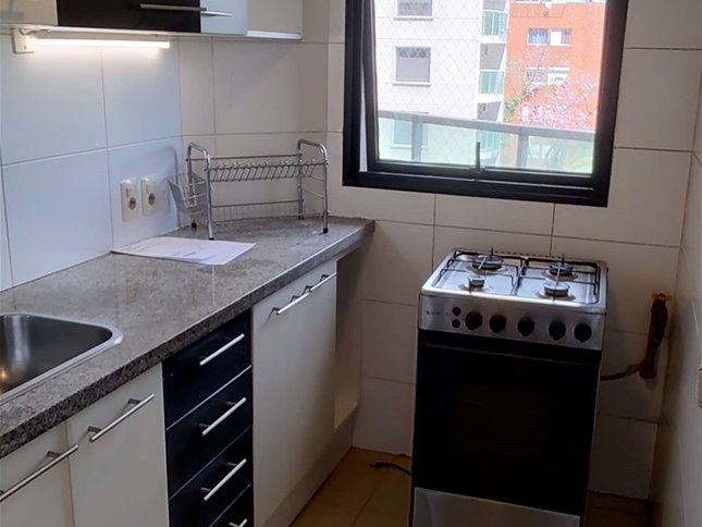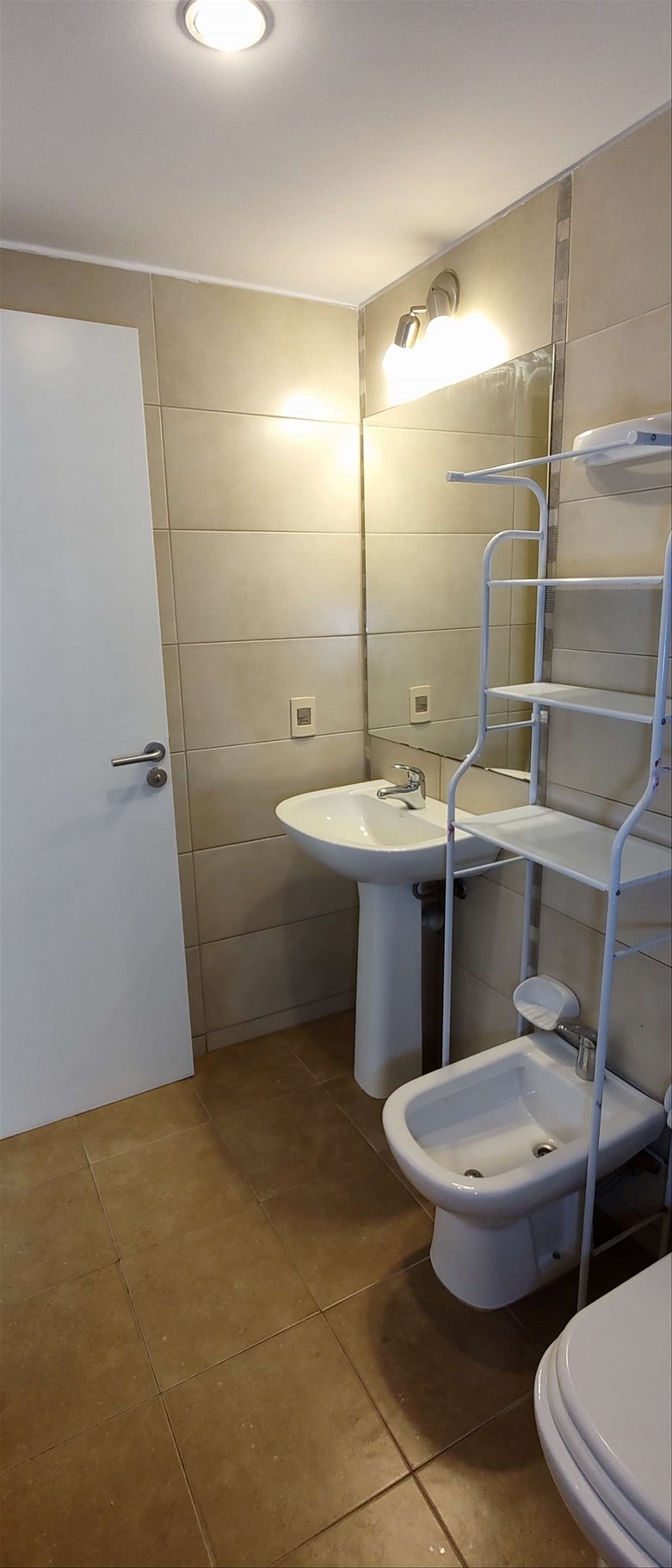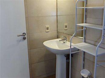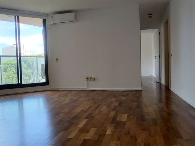 Living comedor con equipo de aire acondicionado.-Terraza con vista a hermoso parquizado arbolado interno,.Cocina definida con lugar lavadero y equipo incluído.Baño amplio con duchero y mampara blindex.-Dormitorio con placard.-Pisos de parquets laqueados.-Agua caliente central y calefacción.Garage.El edificio cuenta con: Piscina climatizada.Sauna.Sala fitness.Áreas verdes.Vigilancia 24 hrs.Gastos Comunes: $ 7500, incluye gas, agua caliente central y calefacción.-