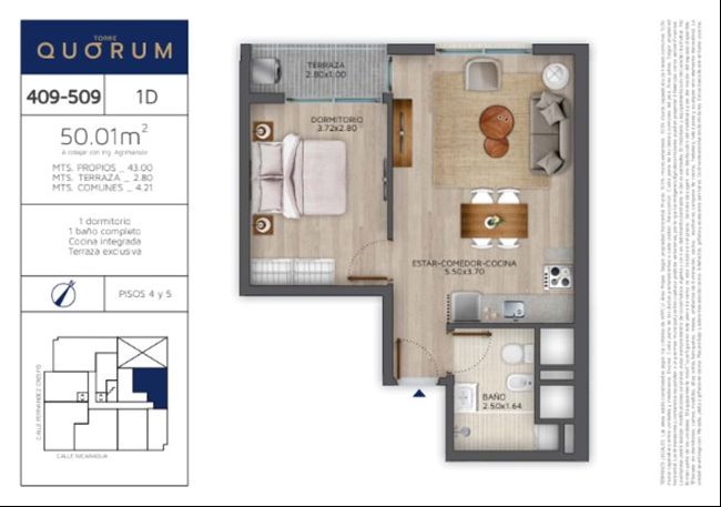 Descubrí tu nuevo hogar en Torre Quórum, ubicada en el barrio Aguada, sobre Fernández Crespo esquina Nicaragua. Este moderno edificio ofrece unidades diseñadas para brindar confort y funcionalidad.El apartamento de 1 dormitorio cuenta con un living comedor luminoso, cocina integrada con muebles de calidad y baño con excelentes terminaciones. Dispone de una terraza privada al lateral del edificio con orientación norte que agrega un toque especial a tu espacio.Extras 2 Aire acondicionadosCalefonPlacardAdemás, el edificio ofrece amenities como gimnasio, solarium, barbacoa, cowork, playroom y lavandería. Todo pensado para mejorar tu calidad de vida en un entorno moderno y seguro.¡Viví la experiencia Quórum! Consultá por disponibilidad y agenda tu visita.