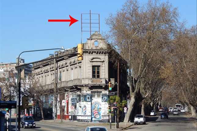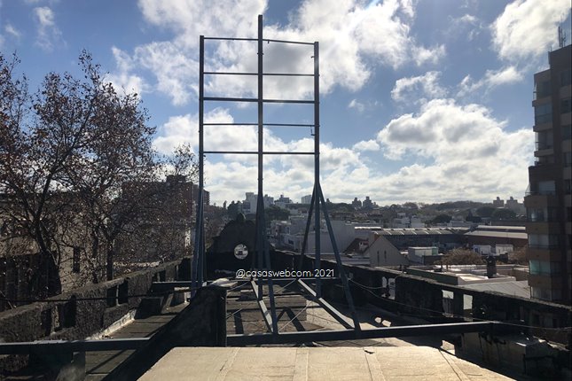 Estudio Pablo Lakierovich alquila estructura metálica para publicidad ubicada sobre las construcciones de la calle Agraciada, Paraguay y Santa Fe.