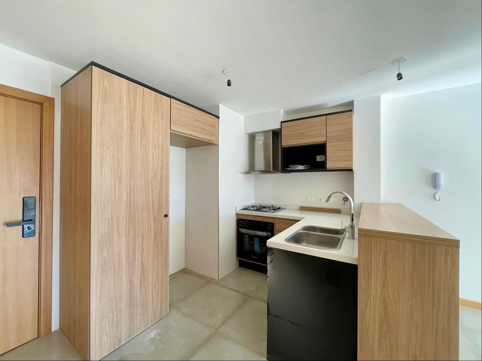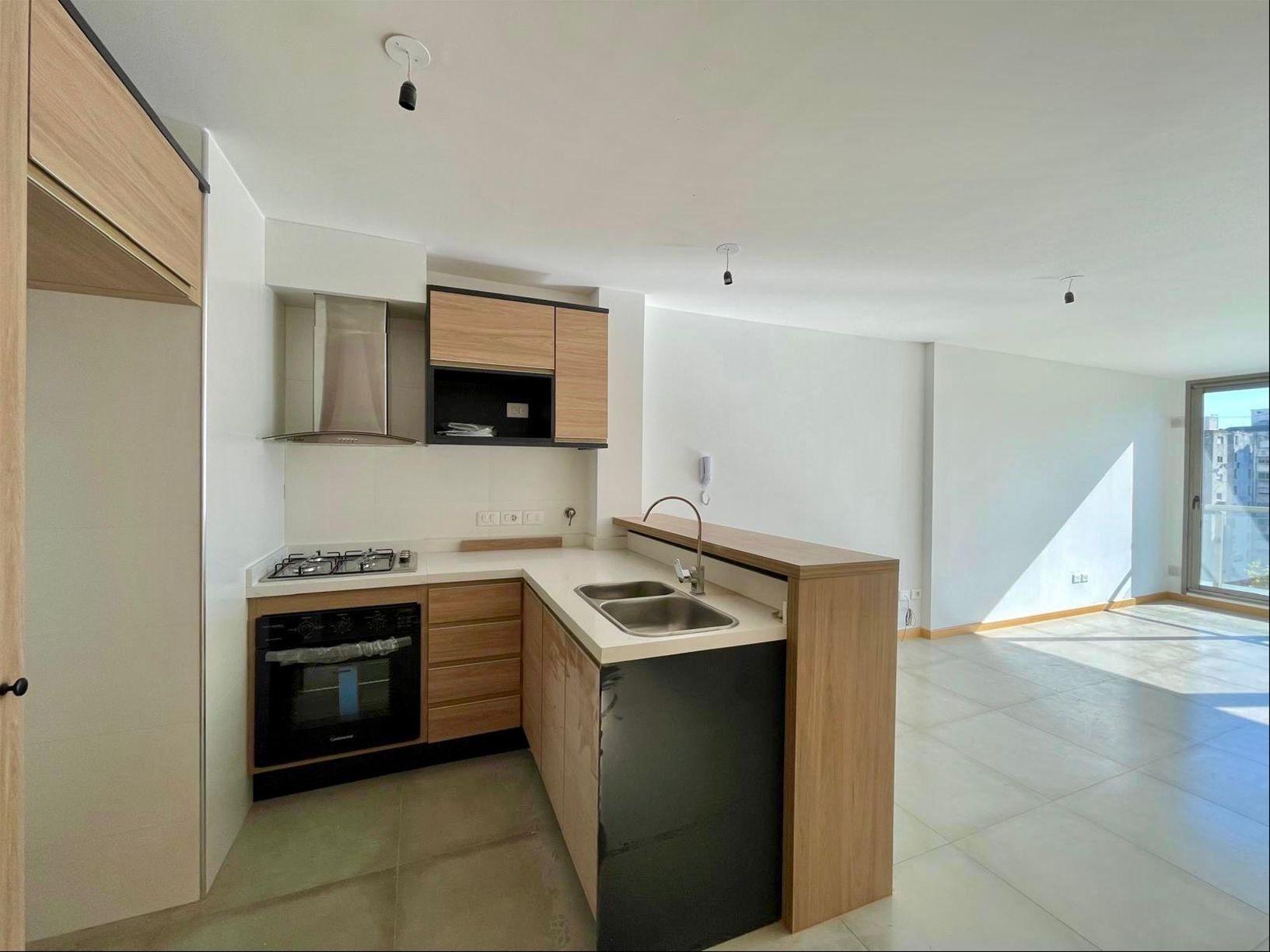 Moderno apartamento a estrenar en el corazón del barrio Pocitos. La propiedad cuenta con living comedor con cocina integrada la cual se encuentra equipada con electrodomésticos de alta calidad (aire, campana, cocina). Posee una terraza al frente con extraordinaria vista. El apartamento tiene un dormitorio amplio y muy luminoso.El edificio cuenta con barbacoa cerrada y lavadero de uso común.No dude en consultar.