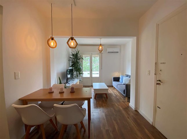RESERVADO. Apartamento reciclado, de 50mts2, en alquiler temporal – 2 dormitorios – PocitosExcelente ubicación, a pasos de Francisco Muñoz y Lorenzo Justiniano Pérez, a 200mts de Av. Rivera y a 600mts de la Playa Pocitos, en una zona residencial muy demandada, con todos los servicios, comercios y transporte a pocos metros.La unidad se encuentra en primer piso por escalera y fue completamente reciclada, ofreciendo ambientes cómodos, funcionales y muy bien equipados.El apartamento cuenta con dos dormitorios.El dormitorio principal es de cómodas dimensiones y dispone de placard.El segundo dormitorio, integrado al área social mediante un cerramiento, genera un ambiente cómodo y funcional.El living tiene salida a balcón al frente, y cuenta con aire acondicionado.El baño es completo, reciclado, y dispone de abertura de aluminio de calidad, permitiendo ventilación natural.La cocina, también reciclada, está equipada con muebles bajo mesada y aéreos, con buen espacio de guardado.El apartamento se alquila completamente amoblado y equipado, con el mobiliario que se visualiza en las fotos, incluyendo:- Vajilla- Televisores- Aire acondicionado- Lavarropas- Calefón- Horno- HeladeraGastos comunes: $4.000Garantía aceptada: aseguradoras (Porto o Surco).Requisito excluyente: no estar en el clearing.No acepta mascotas.Una excelente opción de alquiler temporal en Pocitos, ideal para estudiantes, parejas, familias o quienes buscan una estadía cómoda, en una ubicación estratégica de la ciudad.Coordine visita con- TABORDA INMOBILIARIA -