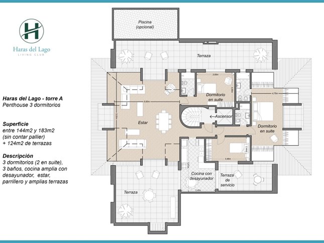 Haras Del Lago Pent House con piscina 2 Dormitorios 3 Baños c/algún equipamiento Garaje doble $ 62.000