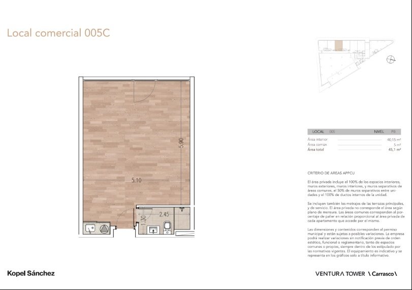 Se ofrece en alquiler un local comercial de 562 m² de padrón y 500 m² edificados, ubicado en el moderno edificio Ventura Tower. Este espacio a estrenar, ideal para emprendedores y negocios en crecimiento, se encuentra en pleno proceso de construcción, lo que permite una adaptación personalizada a las necesidades de su futuro inquilino. La unidad cuenta con un ambiente principal y un baño completo, además de una práctica kitchenette. Su orientación al oeste garantiza excelente iluminación natural durante gran parte del día, y su disposición al frente asegura una gran visibilidad para su negocio. El edificio Ventura Tower destaca por su moderna infraestructura y servicios, ofreciendo un entorno profesional y seguro. Este local comercial representa una propuesta de valor única en una zona con gran potencial de desarrollo y una creciente demanda comercial. La posibilidad de alquilar en estas condiciones, previo a la finalización de la obra, brinda una ventaja significativa para planificar y ejecutar la puesta en marcha de su negocio con anticipación. Estamos hablando de un espacio proyectado para el éxito comercial, situado en un punto estratégico de Canelones.Local 003: 50 m 2 interiores U$S 1550 1500 $ de gastos comunesLocal 004, 005 y 006: 40 m2 interiores, 1500 $ de gastos comunes U$S 1100Local 001: 118 m2 U$S 3500 $ 6000 de gastos comunes 2 baños y kitchenetteLocal 008: 500 m2 U$S 12500 $ 7000 de gastos comunes 2 baños y kitchenetteGarantía de aseguradora y contrato mínimo en locales chicos 2 años y en en locales grandes de 3 años.