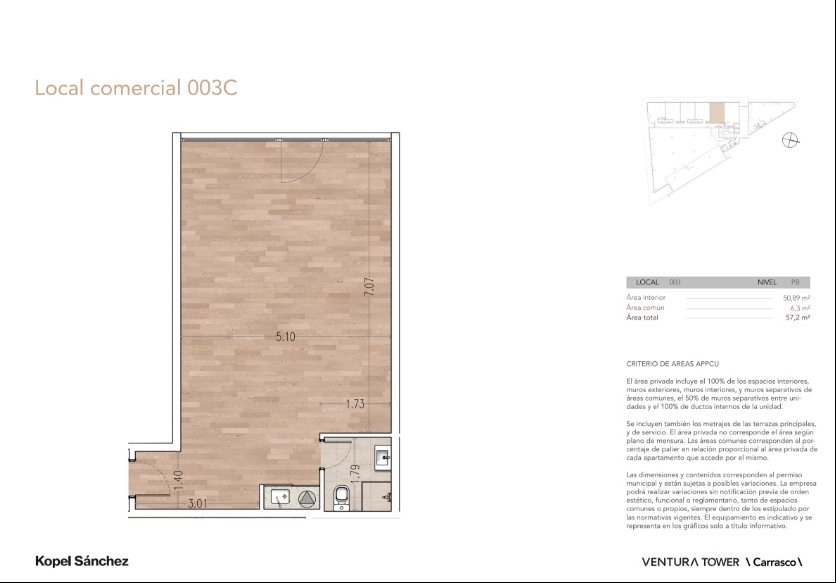 Local 007: 49 m 2 interiores U$S 1600 1500 $ de gastos comunes