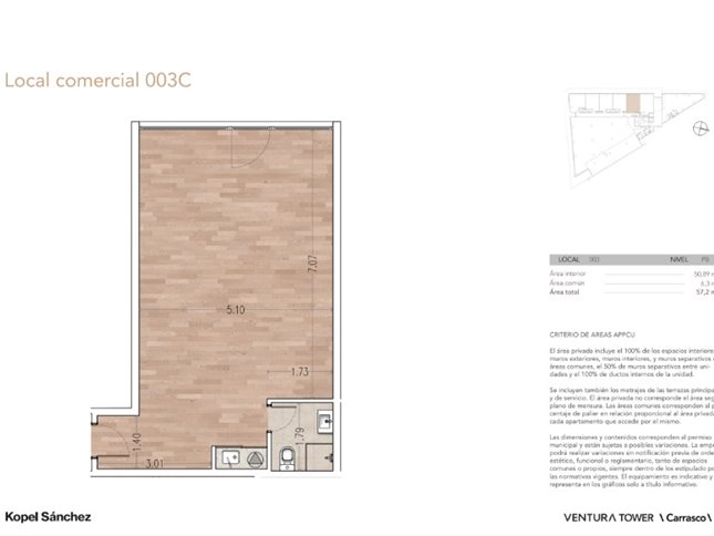 Se ofrece en alquiler un local comercial de 133 m² de padrón y 118 m² edificados, ubicado en primer piso del moderno edificio Ventura Tower. Este espacio a estrenar, ideal para emprendedores y negocios en crecimiento, se encuentra en pleno proceso de construcción, lo que permite una adaptación personalizada a las necesidades de su futuro inquilino. La unidad cuenta con un ambiente principal y un baño completo, además de una práctica kitchenette. Su orientación al oeste garantiza excelente iluminación natural durante gran parte del día, y su disposición al frente asegura una gran visibilidad para su negocio. El edificio Ventura Tower destaca por su moderna infraestructura y servicios, ofreciendo un entorno profesional y seguro. Este local comercial representa una propuesta de valor única en una zona con gran potencial de desarrollo y una creciente demanda comercial. La posibilidad de alquilar en estas condiciones, previo a la finalización de la obra, brinda una ventaja significativa para planificar y ejecutar la puesta en marcha de su negocio con anticipación. Estamos hablando de un espacio proyectado para el éxito comercial, situado en un punto estratégico de Canelones.
