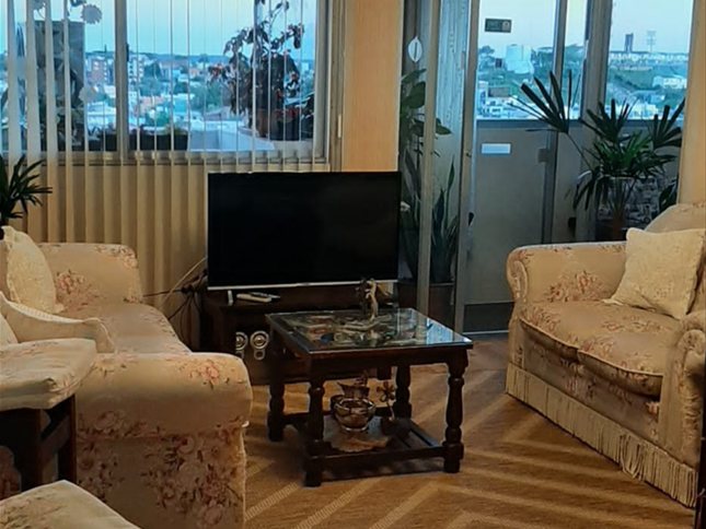 Living comedor hacia el frente, con balcón, AA, confortable, con buena iluminación y ventilación.
