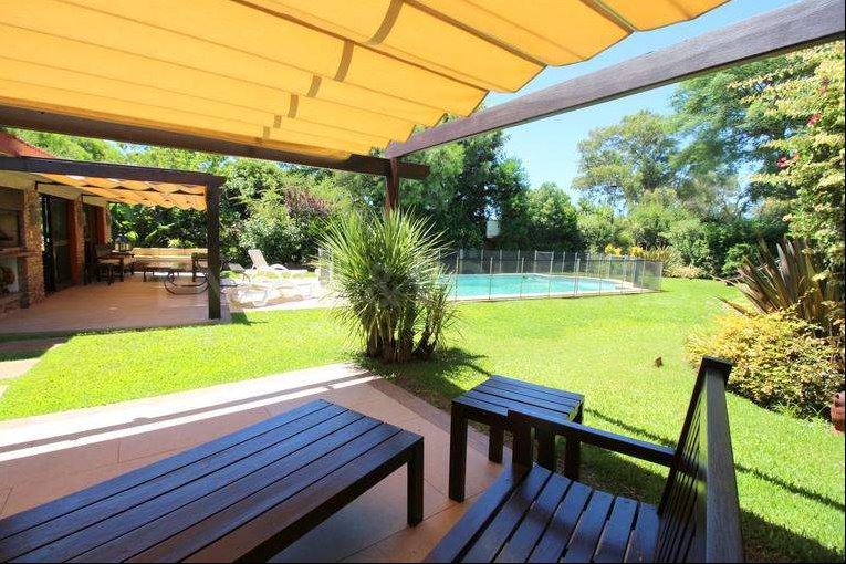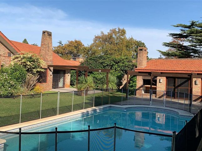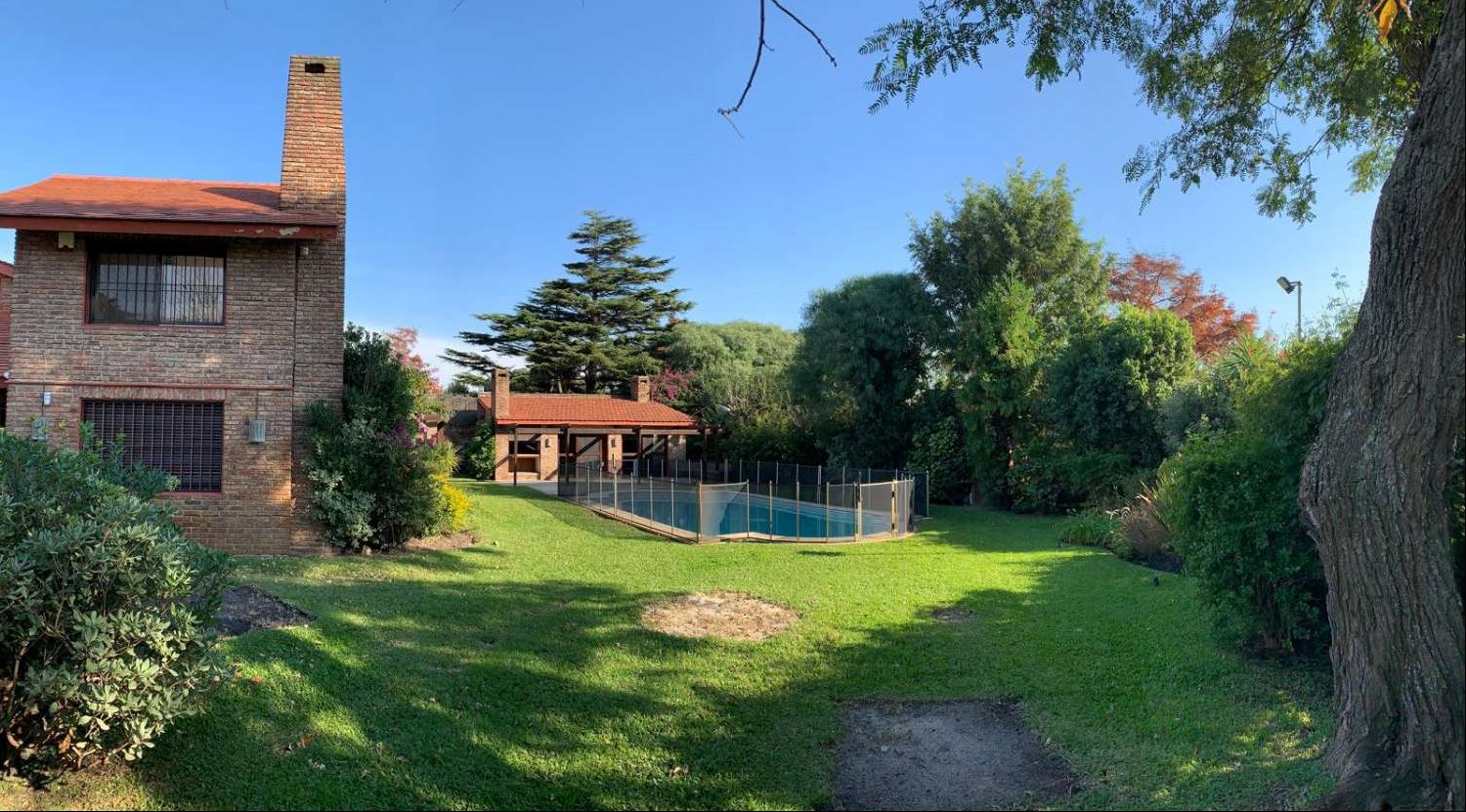 Casa en venta en Carrasco SurResidencia de categoría ubicada en el corazón de Carrasco Sur, sobre un terreno de 1.087 m² con frente a tres calles. Entorno exclusivo y seguro, rodeado de residencias diplomáticas.Desarrollada en 300 m² interiores, ofrece amplios ambientes con excelente luz natural.En planta baja: gran living y comedor con estufa a leña, cocina definida, dormitorio de servicio con baño y dos suites.En planta alta: suite principal con gran privacidad.Cuenta con losa radiante, aire acondicionado en dormitorios, alarma, cámaras y riego automático.Barbacoa cerrada con baño y parrillero integrable al jardín. Piscina climatizada, horno a leña y amplio fondo verde.Garage cerrado para cuatro autos y depósito.Ubicación privilegiada, próxima a Arocena, Portones Shopping, colegios y servicios.Una propiedad ideal para quienes buscan categoría, seguridad y excelente ubicación.