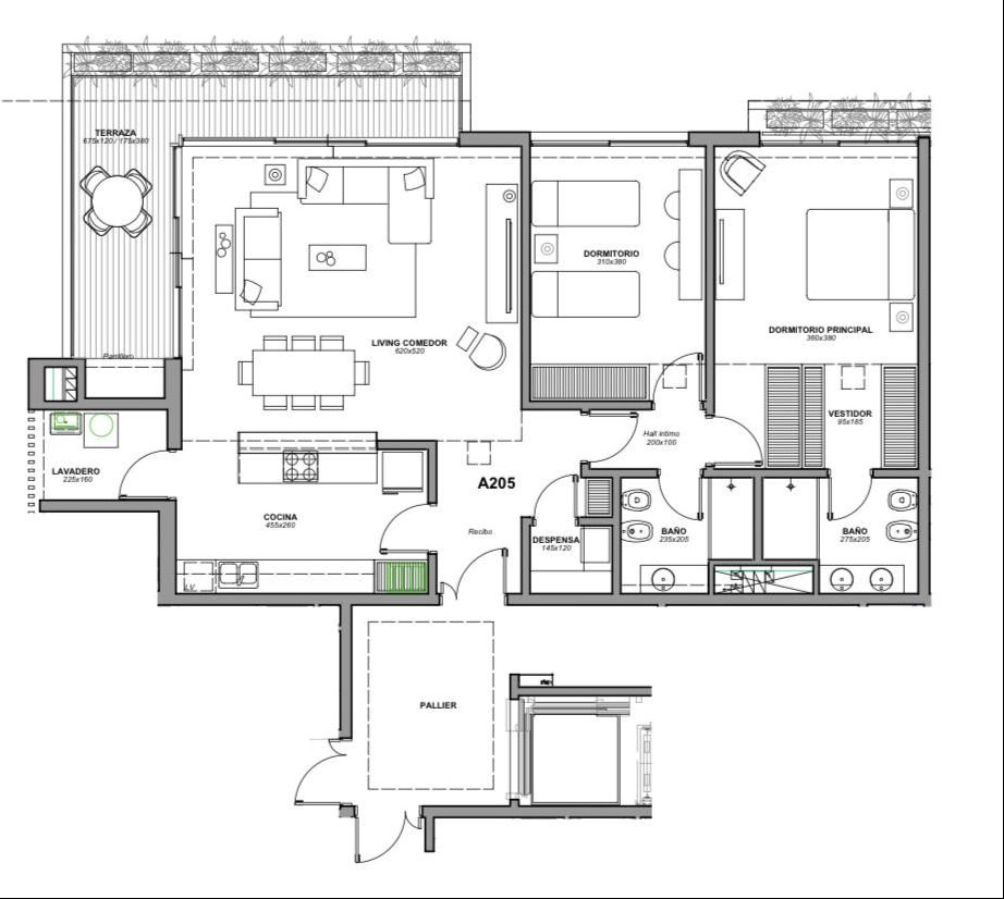 Hermoso apartamento a estrenar ubicado en el corazón de Barrio Parques, rodeados de amplios espacios verdes y con acceso por 3 calles.El conjunto esta integrado por tres edificios de 4 plantas. mas amenities compuestos por barbacoas, play room, Gimnasio dirigido por personal trainer, sala de aparatos totalmete equipada y piscina exterior templada.El proyecto incorporda un nuevo concepto WELLNESS con piscina cerrada para spinning, spa, sauna seco y áreas de relajación., sala de masajes y vestuario Esta unidad se presenta con características únicas, que hacen la diferencia , y se visualizan muchas mejoras en cada detalle.Se compone de un espacioso living comedor, con amplios ventanales con hermosas cortinas de lino y salida a una gran terraza con parrillero propio con parrilla de acero inoxidable.la cocina se encuentra integrada y optimiza el espacio , con buen lugar de guardado, accesorios como ser, especiero, basureros dobles, etc.Todos los detalles están muy bien cuidados,.terraza lavadero y alacena.Dos Dormitorios, el principal en suite, con mampara y amplio vestidor. Segundo dormitorio con placard y baño completoMuy buen garage para un auto y boxAire central en todo el apartamento Vigilancia virtual 24 horas en el edificio y presencial en el barrioGastos Comunes $17000
