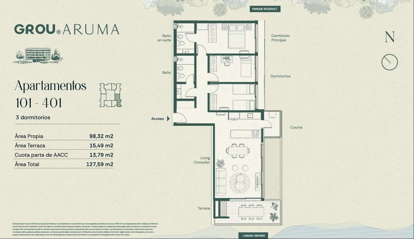 Venta Apartamento Parque Miramar 3 dormitorios GROU Aruma