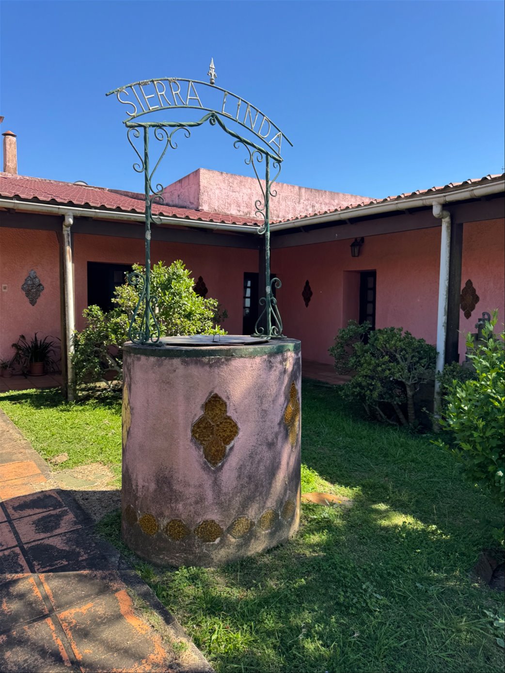 El caso principal tiene forma de U con aljibe en el centro y un alero de 2,40 mts, pisos de loyota.
