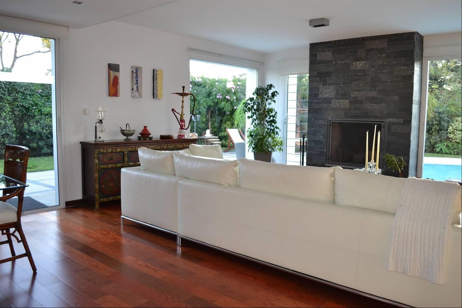 Espectacular casa de estilo minimalista en Carrasco Sur ubicada en una zona muy tranquila.La casa esta desarrollada sobre un terreno de 800 mts2 con 446 mts2 edificados en 3 plantas con subsuelo con espacios amplios para su mejor disfrute.En planta baja se encuentra un amplio living comedor con estufa a leña y ventanales de piso a techo, estar con estufa a leña, escritorio, cocina definida con doble mesada y una amplia isla central, lavadero y servicio completo.En planta alta s encuentran los 4 dormitorios en suite. El dormitorio principal cuenta con estufa a leña, sala de masajes, jacuzzi, vestidor, ducha escocesa y común.en el subsuelo tenemos , sala de juegos y cava. Amplio jardín con piscina, parrillero con horno de pan, baño ,garage para 2 autos y cochera para hasta 4 vehículos.Precio de venta U$S 1.270.000