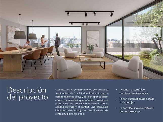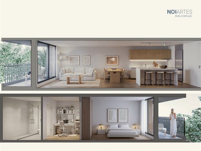 CENTRO. Edificio NOI Artes / Entrega de unidades: Abril 2026-Propuestas arquitectónicas innovadoras a la par de una excelente calidad constructiva y finas terminacionesLas unidades se destacan por su amplitud, sus amplios ventanales, su luminosidad, vistas despejadas, amplias terrazasTodas las unidades disponen de pisos simil madera, baños revestidos en porcelanato de primera calidad, Aberturas de aluminio, Cocina integrada con mesada de granito, con buena capacidad de muebles aéreos y bajo mesadaDormitorios con placardsPrevisión para splits de aire acondicionadoUnidad en 1er piso con amplio patio de 74m2 de uso exclusivo- USD152.600-GARAGES: A la venta a partir de USD20.000-Gastos de ocupación: 5%Comisión inmobiliaria: 3%+IVANOTA: Algunas de las fotos corresponden a la unidad showrrom ya amueblada y equipadaCOMPRA CON BENEFICIOS FISCALES POR ESTAR CONSTRUIDO BAJO LA LEY DE VIVIENDA PROMOVIDA: EXONERACION DE: * IRPF en el alquiler de estas unidades* Impuesto al Patrimonio. * IVA a los ingresos derivados de las actividades de enajenación de la vivienda. * ITP (Impuesto a las Trasmisiones Patrimoniales) AMENITIES: * Barbacoa equipada con parrillero* Jardín urbano y Zen* Espacio de cowork* LaundryPOR CONSULTAS Y COORDINACIÓN DE VISITAS FAVOR ENVIAR MENSAJE VIA WHATSAPP O LLAMAR AL CELULAR DE CONTACTO