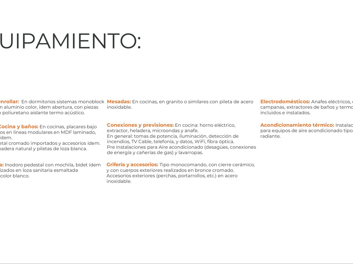 EQUIPAMIENTO: Todas las unidades se entregan con luminarias, placares en dormitorios, anafe, campana de extracción y calefón