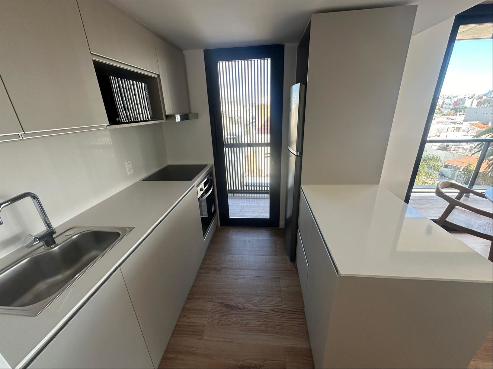 Cocina integrada con isla y buena capacidad de muebles aéreos y bajo mesada-