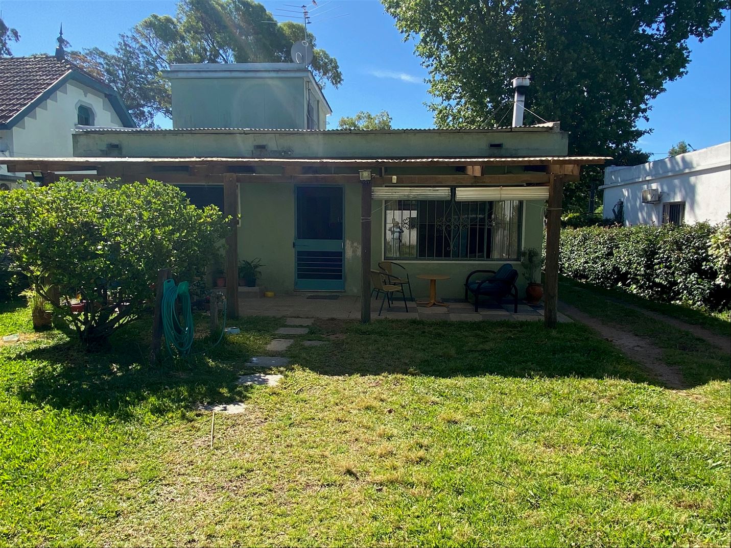 Casa en venta en Lezica. La casa es con techo de plancha, tiene cuatro dormitorios, uno de ellos en planta alta, living comedor con estufa a leña, baño con revestimiento en azulejos, cocina comedor con estufa a leña, revestmiiento en azulejos. Pisos en madera y monolítico, aberturas en madera y hierro, coon cortinas de enrollar y rejas. Buen terreno de 600 m2. con entrada para coche, patio al frente y buen fondo con cochera y parrillero en techo liviano, y dos habitaciones con garaje en techo liviano.