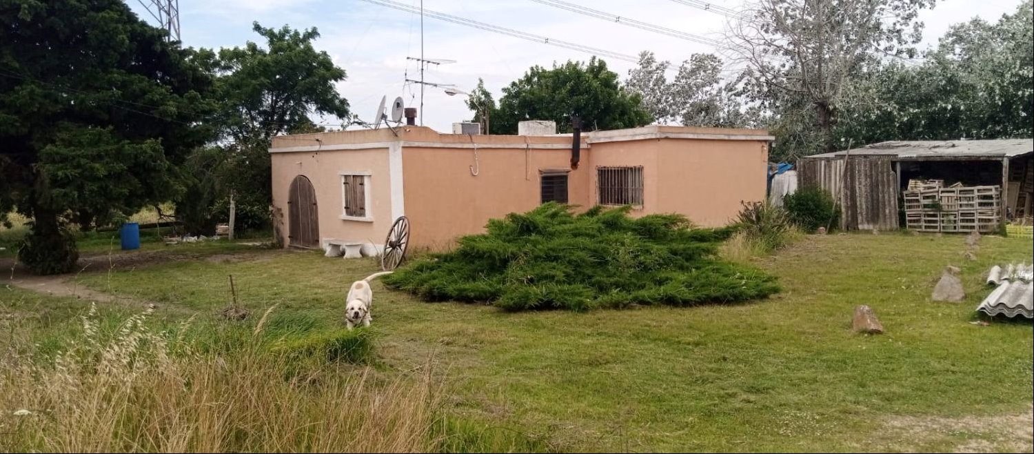 Terreno tipo chacra con casa y galpónes. Son 17.300 m2, tiene 200 m2 edificados aprox. Casa con cuatro dormitorios uno muy amplio (6x5m), living comedor, cocina grande, baño y porche cerrado, galpones. Son 205 m de frente, hay pozo de agua y tiene muy buenas posibilidades para utilización de aguas subterraneas.