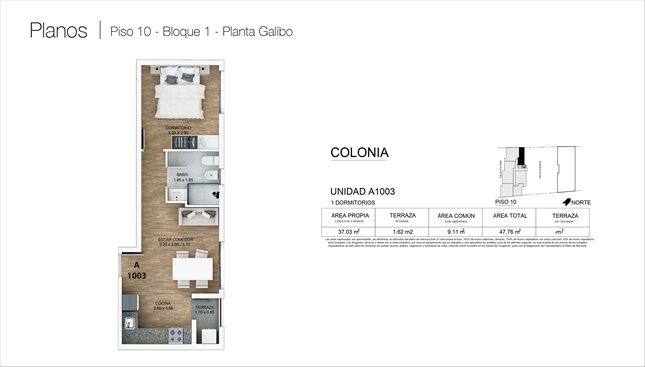 * Las superficies de los apartamentos incluyen muros divisorios hasta su eje, ductos, terrazas, balcones, prorrateo de área común, circulación vertical exclusivamente de planta.