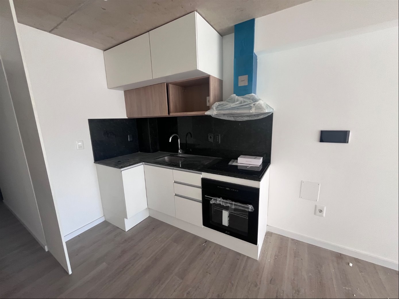 Cocina integrada con anafe, campana, horno empotrado