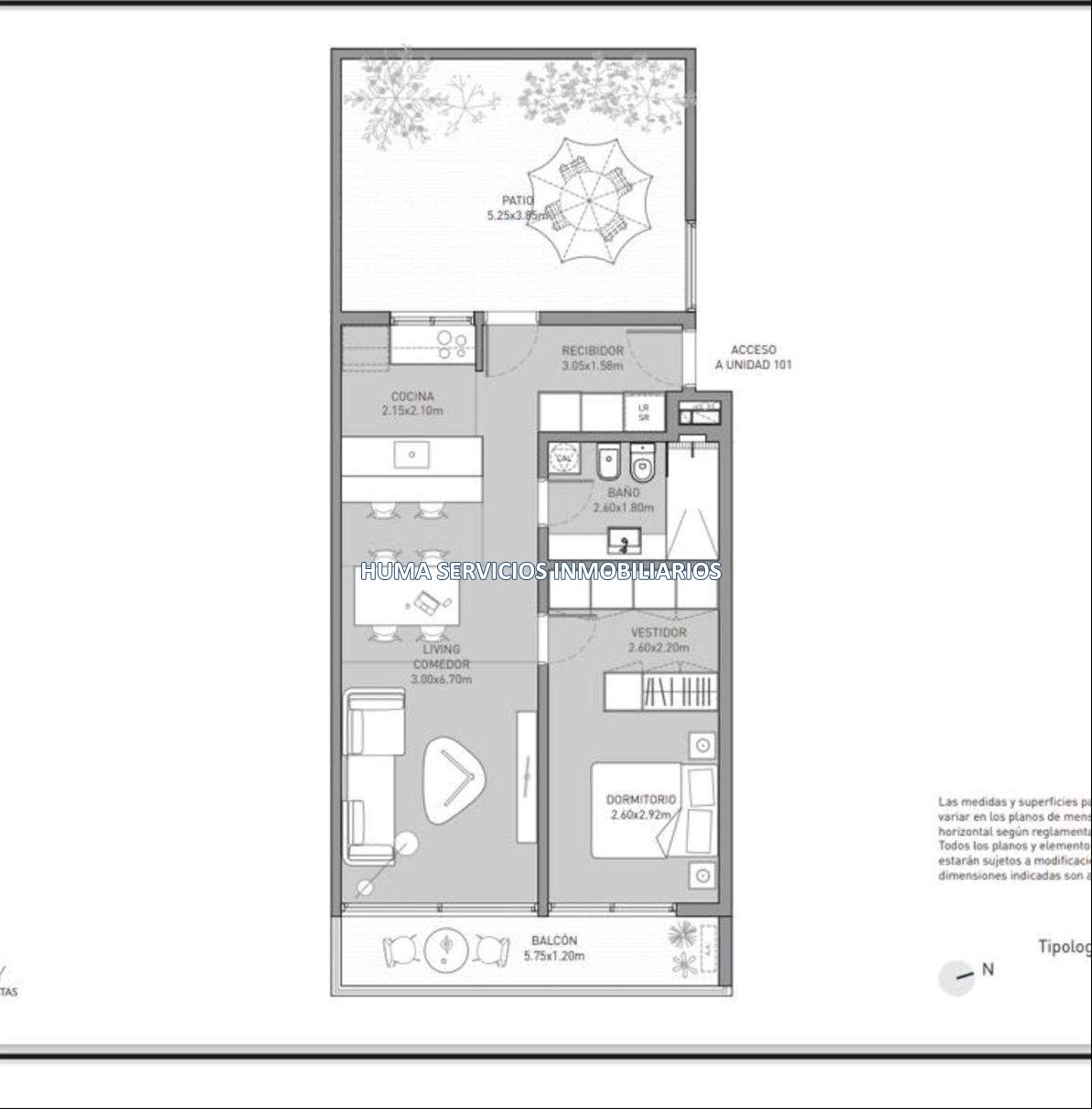 Balcón al frente y patio de uso exclusivo de 20 m², ideal para disfrutar al aire libre.