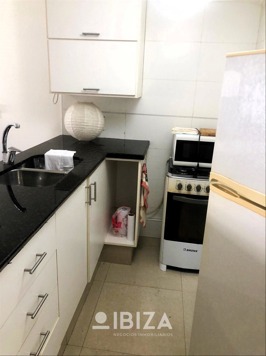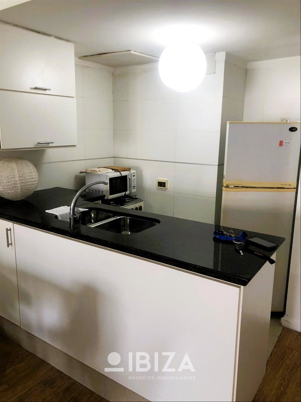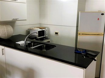 - Agradable cocina integrada con placares sobre y bajo mesada