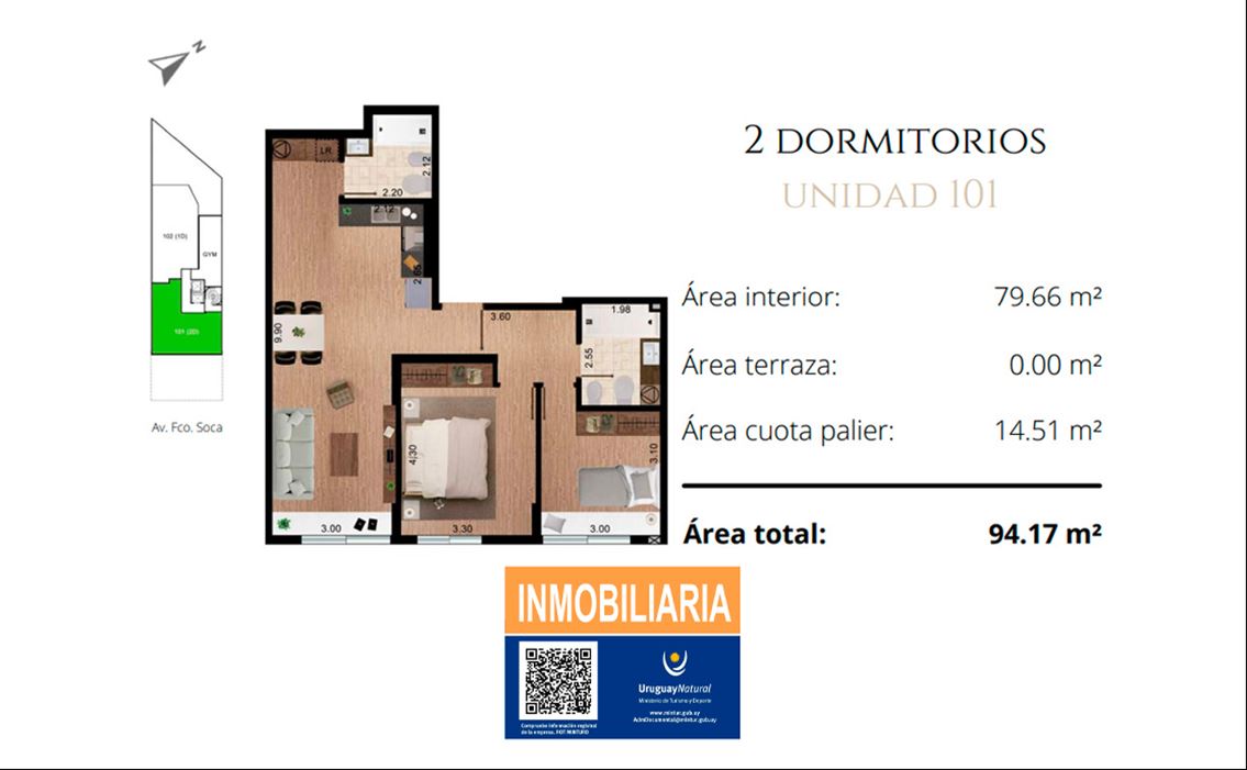 EN VENTA CON PROMOCIÓNApartamento en en una ubicación privilegiada de Pocitos, cercano a todo, próximo a Av. Rivera y Av. Brasil, a pasos de todo lo que uno precisa. Un punto estratégico de la ciudad, con gran conectividad.El edificio cuenta con seguridad:Reja perimetral con:Portones vehiculares automatizadosPortón peatonal con portero eléctricoCámaras de seguridad.Además en el primer piso cuenta con:GIMNASIOBAÑOPATIO DE ACTIVIDADESAREA DE TENDEDERO COMÚNY en el piso 12 cuenta con:2 BARBACOAS CON PARILLEROS YTERRAZASLIVING EXTERIORSOLARIUMHIDROMASAJETENDEDEROBAÑOCuenta con espacios comunes y areas de servicio, para desarrollar una vida saludable y moderna. Gimnasio, barbacoas, tendederos,rooftop con hidromasaje, terrazas e increíbles vistas. Todo el proyecto y sus instalaciones están pensadas y diseñadas para disfrutar de tu hogar y del día a día.El apartamento cuenta con:2 dormitorios con placares1 baño completo1 baño de servicioAmplio living - comedorCocina integradaAl frentePrecio de lista: USD 281.568Precio en PROMOCIÓN: USD 241.191Con opción a garage por USD 30.204Se entrega en Octubre 2024.Honorarios inmobiliarios: 3% más iva.Para ampliar información y agendar visita:099 170 339