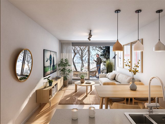 Esta tipología de 70 m² está pensada para quienes necesitan más espacio y confort. Cuenta con dos dormitorios y dos baños completos, además de un área social luminosa y bien distribuida. Una opción ideal para familias o quienes buscan un hogar con mayor amplitud dentro de un entorno moderno.