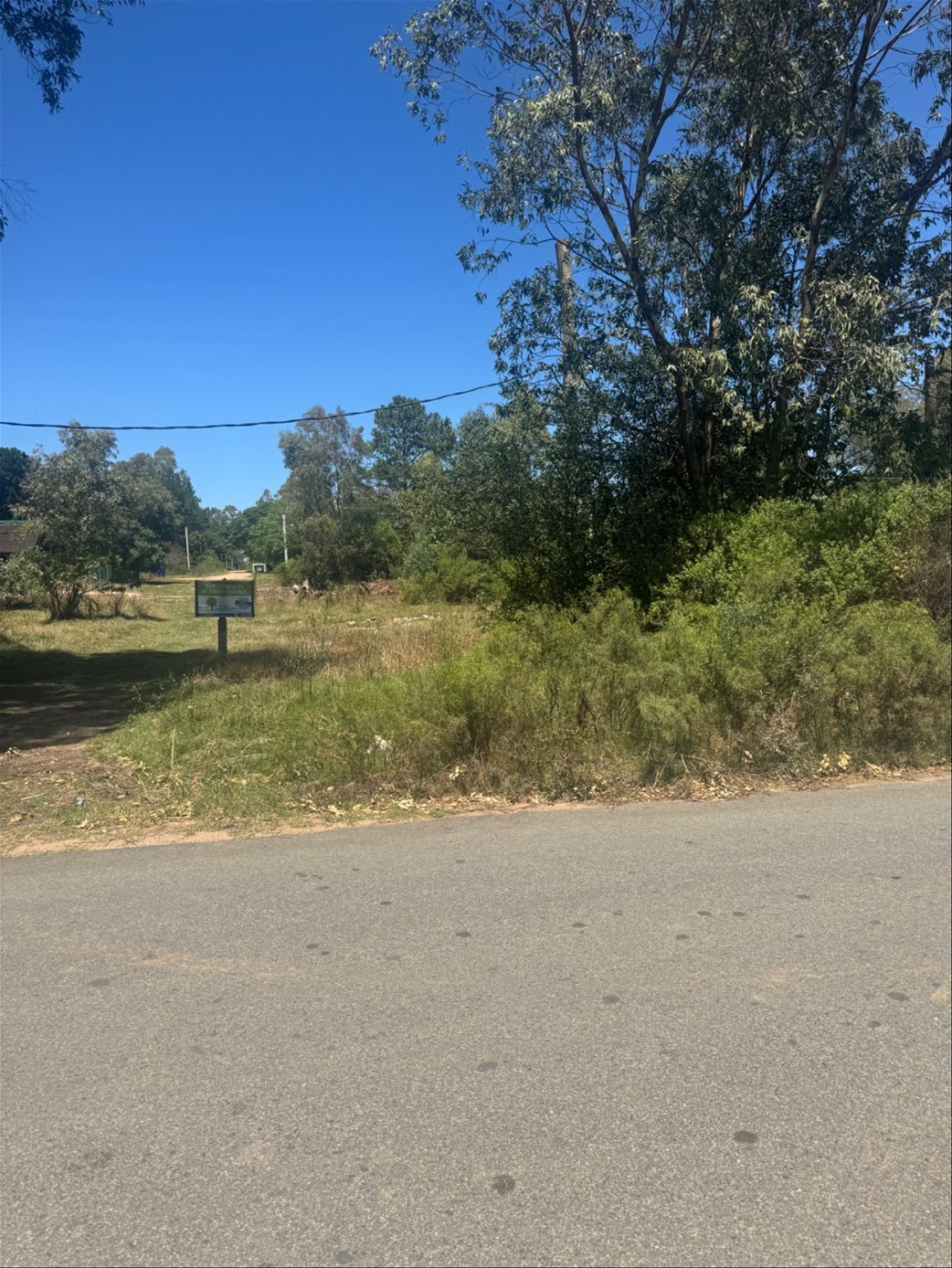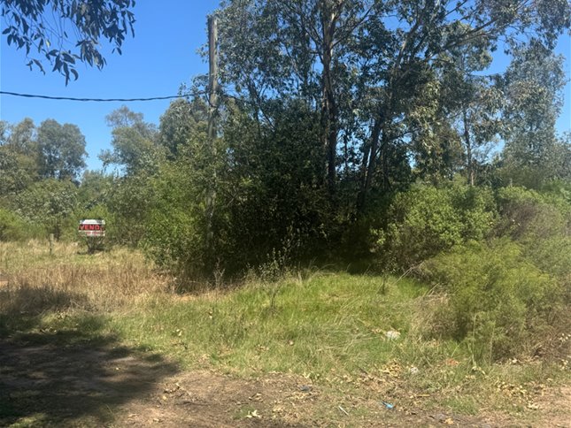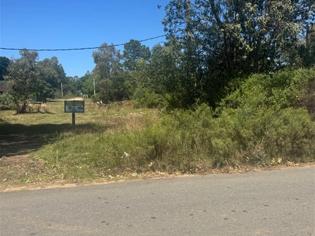 Terreno en esquina sobre calle asfaltada con linea de bus en puerta .