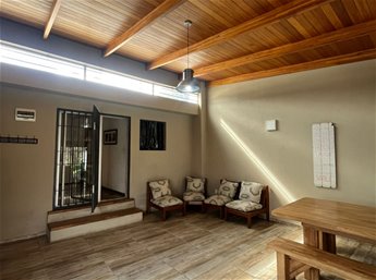 Hermosa casa con buenas comodidades, luminosa con gran fondo verde.4 dormitorios 2 baños (1 completo y 1 toilette)3 livings o espacios sociales (uno con estufa a leña)Cocina comedor moderna y luminosaGarage y cochera con espacio para 2 autos.Gran Barbacoa cerrada con calefactor de alto rendimientoJardín al frente.Portones automatizados.GalpónGran Fondo verde con hermosa vegetación.Padrón de 813 mts2 totales.Precio: $245.000