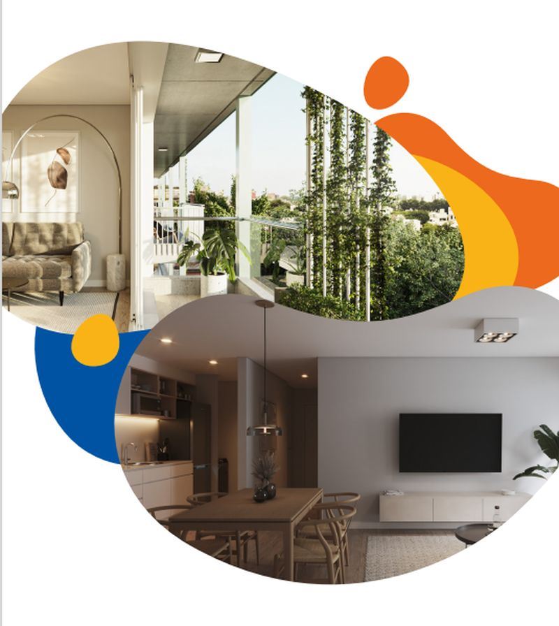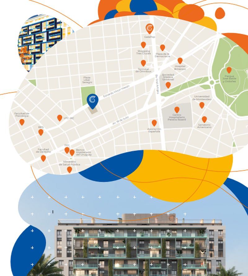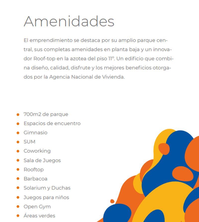 * Las superficies de los apartamentos incluyen muros divisorios hasta su eje, ductos, terrazas, balcones, prorrateo de área común, circulación vertical exclusivamente de planta.