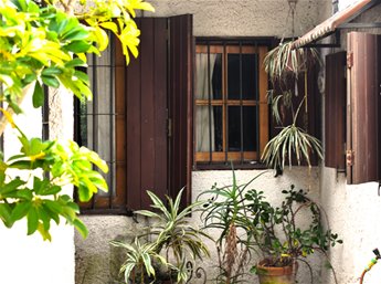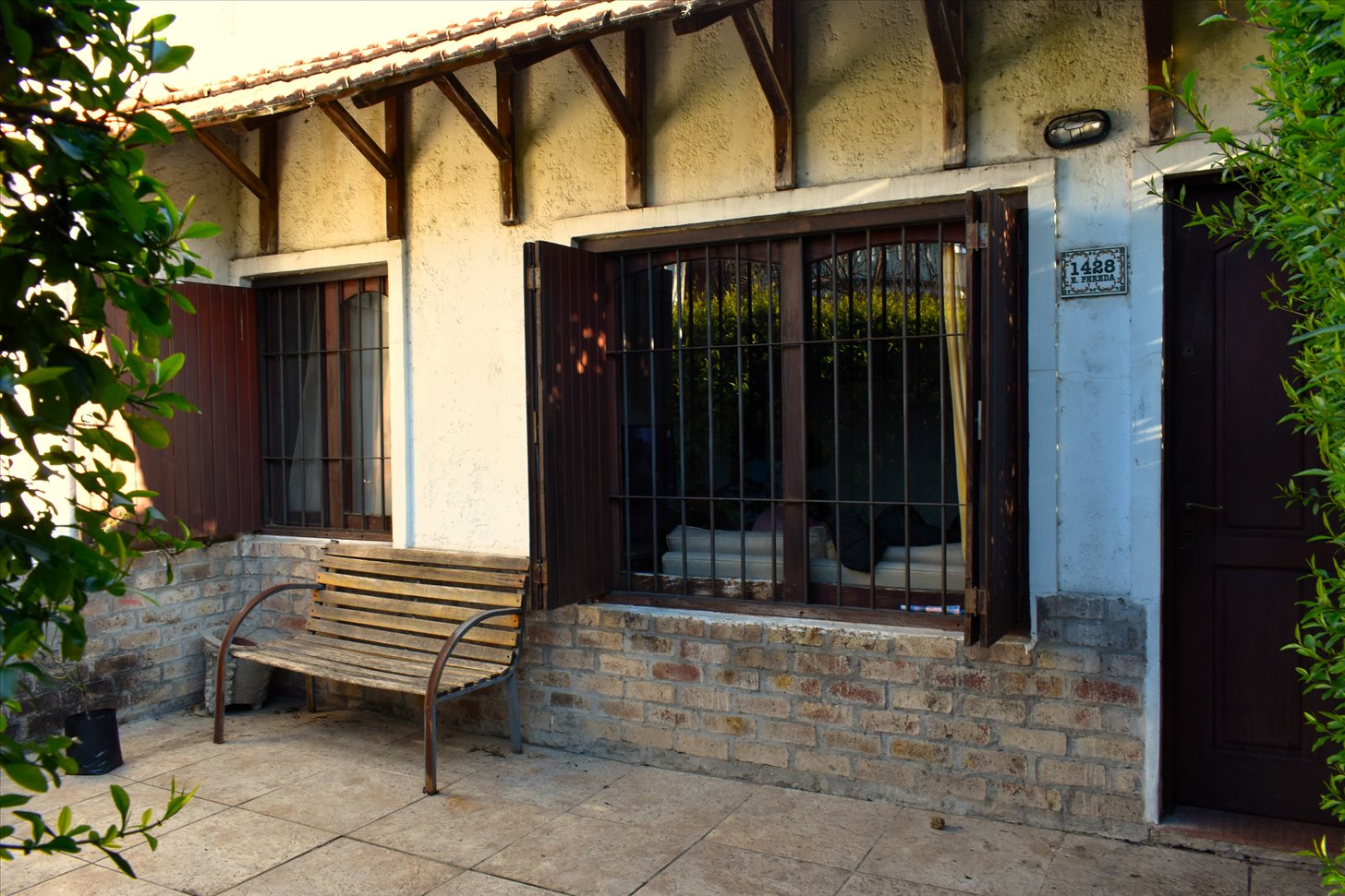 - Jardín al frente, íntimo, con rejas.