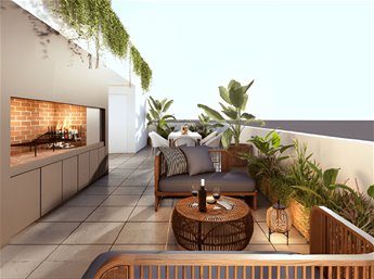 -Planta Baja 1 DORMITORIO AL FRENTE: U$S 112.000, superficie construida 38,70 m2, terrazas 2,58 m2.