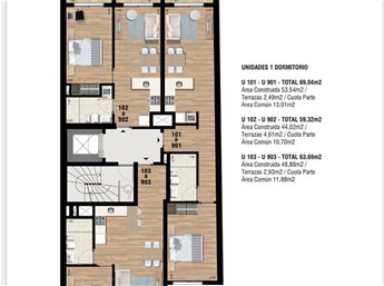 -1 DORMITORIO CONTRAFRENTE: U$S 131.500, superficie construida 40,68 m2, terrazas 3,28 m2.