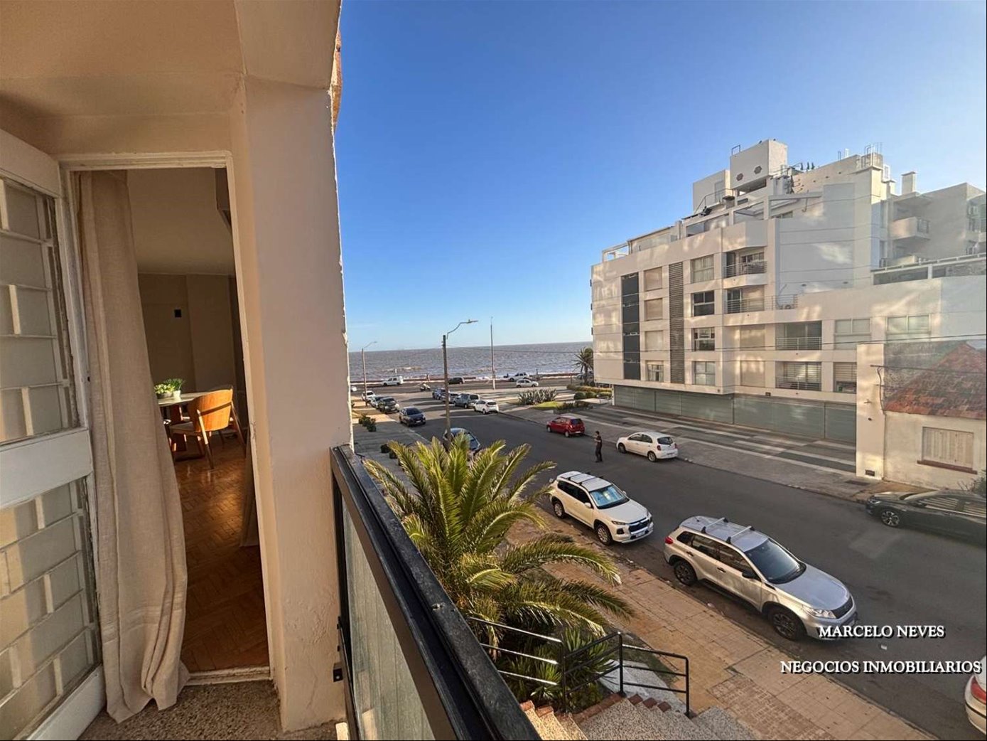 Primer piso al frente, muy buena orientación, todo al oeste, con sol de la tarde en todos los ambientes. Living comedor con terraza y vista al mar.