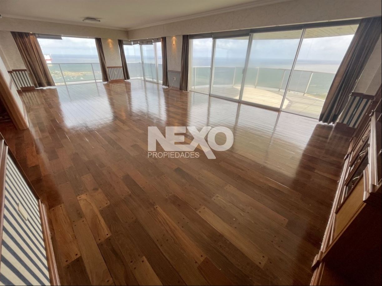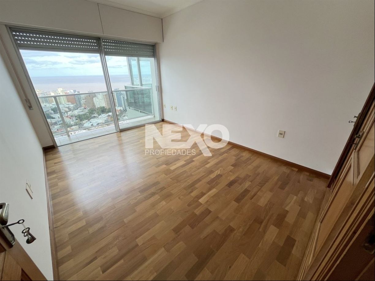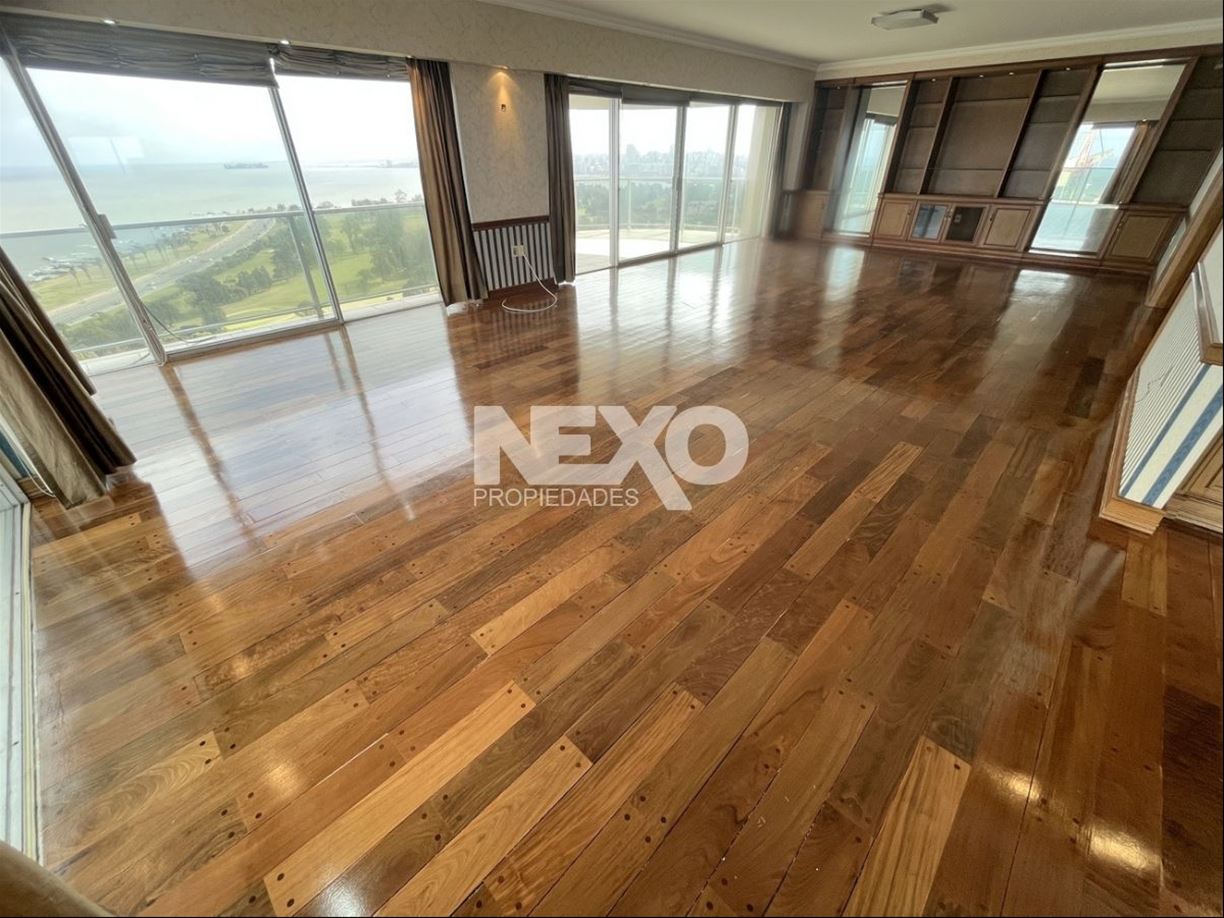 Todo el apto. cuenta con excelente carpintería y pisos en lapacho, recepción con placard despojador y magníficas terrazas para deleitarse con los atardeceres y la entrada de barcos al puerto de Montevideo. 3 amplios dormitorios con muy buenos placares y 5 baños, 2 de ellos en suite. El dormitorio principal en suite mira al frente y es de gran tamaño, cuenta con un precioso vestidor, baño con jacuzzi y ducha aparte.