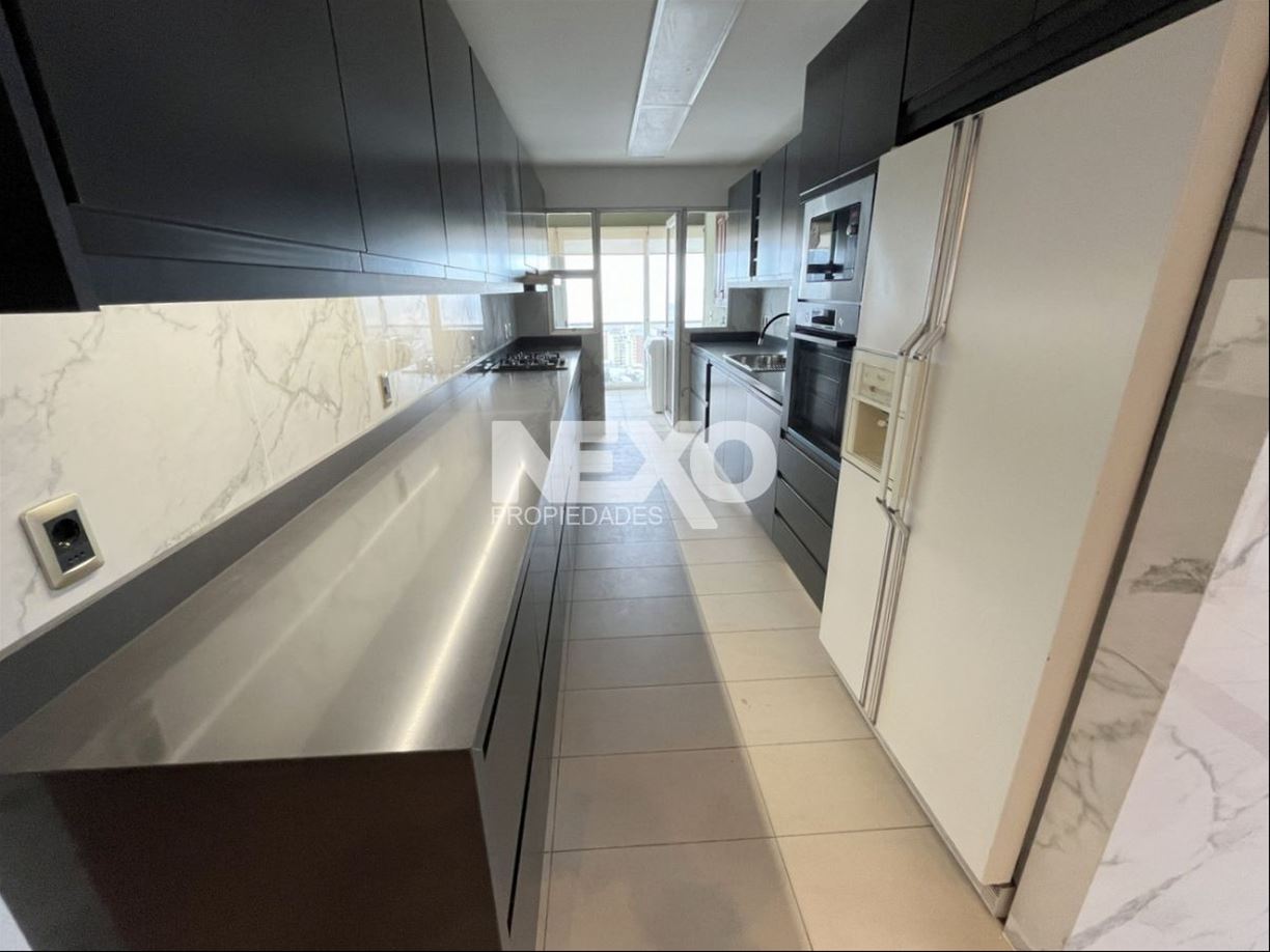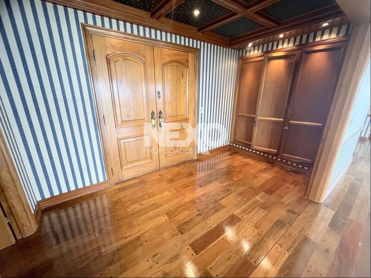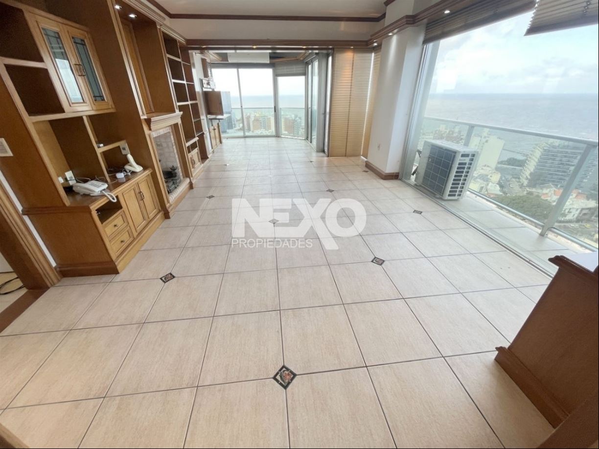Todo el apto. cuenta con excelente carpintería y pisos en lapacho, recepción con placard despojador y magníficas terrazas para deleitarse con los atardeceres y la entrada de barcos al puerto de Montevideo. 3 amplios dormitorios con muy buenos placares y 5 baños, 2 de ellos en suite. El dormitorio principal en suite mira al frente y es de gran tamaño, cuenta con un precioso vestidor, baño con jacuzzi y ducha aparte.