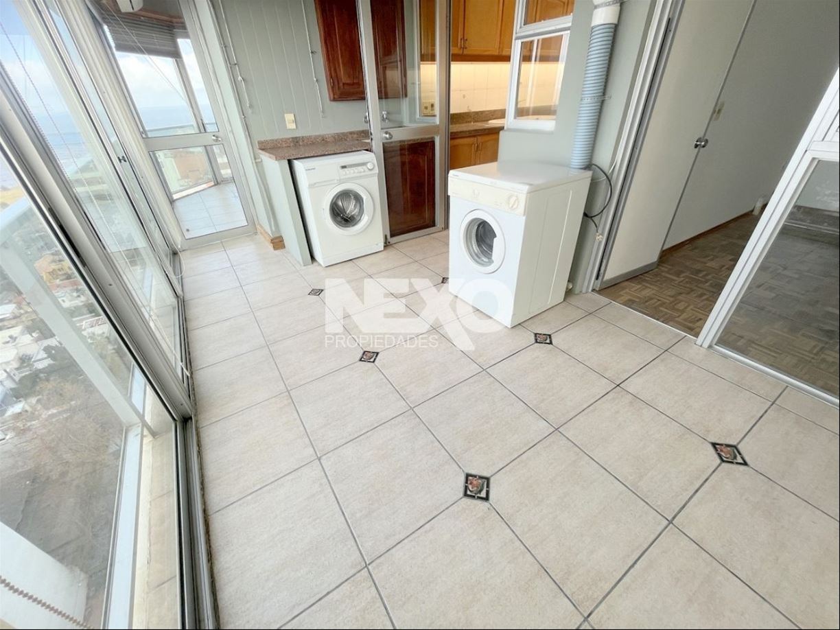 Gran estar con hogar con vista al faro de Punta Carretas y terraza con parrillero integrada al apto. Hermosa cocina a estrenar (recientemente actualizada) con doble mesada y espacios amplios para línea blanca. Terraza lavadero y servicio completo.