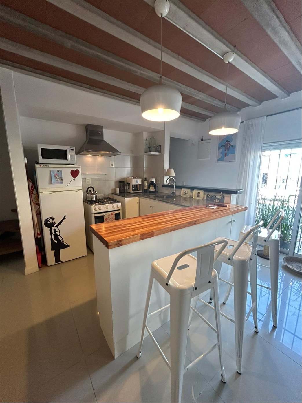 En planta baja: living comedor al frente con cocina integrada.En planta alta: dos dormitorios al frente, baño completo y terraza lavadero.Aire acondicionado split en living comedor y en dormitorio principal.Hay un box comun para guardar bicicletas.Gastos comunes: $4.300 mensualesFondo de reserva: $700Primaria: $5.622 Contribución: $14.472ACEPTA PRÉSTAMO BANCARIO