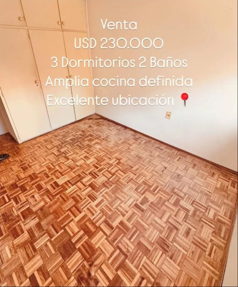 Apartamento 3 Dormitorios | Pocitos – Benito Lamas casi Luis de la TorrePrecio de venta: U$S 230.000Comisión inmobiliaria: 3% + IVAGastos comunes: $U 7.800Superficie: 83 m² interiores + 2 balconesPiso: 5°Garaje: No (opción a 1 cuadra y media)Ubicación:Excelente ubicación en Pocitos, sobre Benito Lamas casi Luis de la Torre, a solo 50 metros del Ombú. Calle tranquila y segura, rodeada de servicios, transporte y espacios verdes, en una de las zonas más valoradas del barrio.Características del apartamento:Living comedor amplio y muy luminoso, con gran ventanal3 dormitorios, todos con placares2 baños completamente recicladosCocina definida, luminosa, con placares bajo mesada y aéreosTerraza lavadero amplia y ventilada, con salida desde la cocinaBalcón en dormitorio principal, con vista despejadaInstalación eléctrica a nuevoEntrada principal y entrada de servicioEdificio:Edificio de sólida construcciónPorteríaBuen mantenimiento generalGastos e impuestos:Gastos comunes: $7.800Contribución inmobiliaria: 3 cuotas de $11.000Impuesto de Primaria: 3 cuotas de $2.990Tributos domiciliarios: $1.770