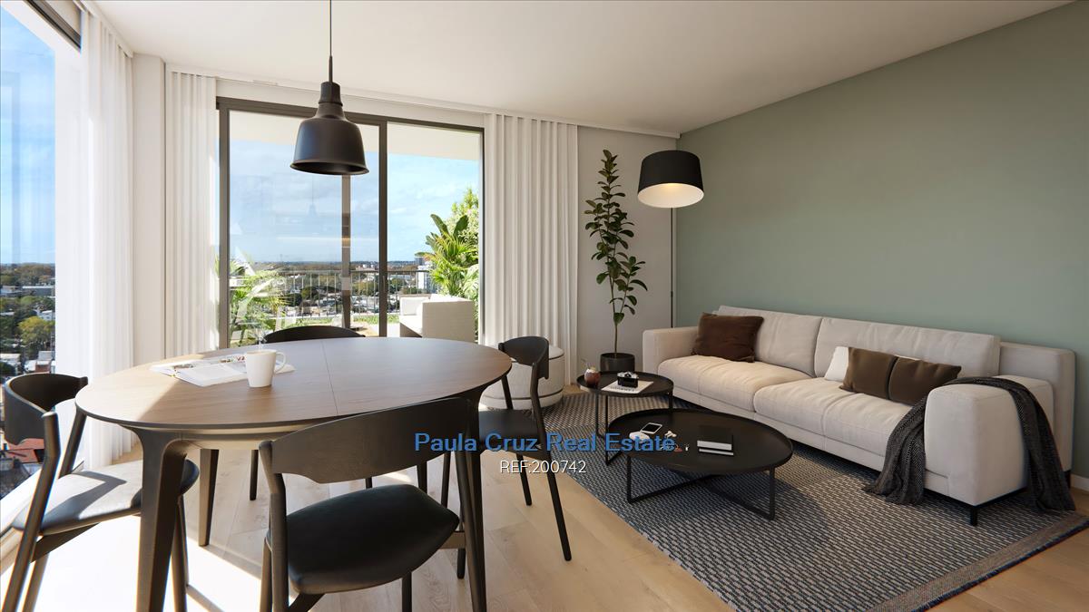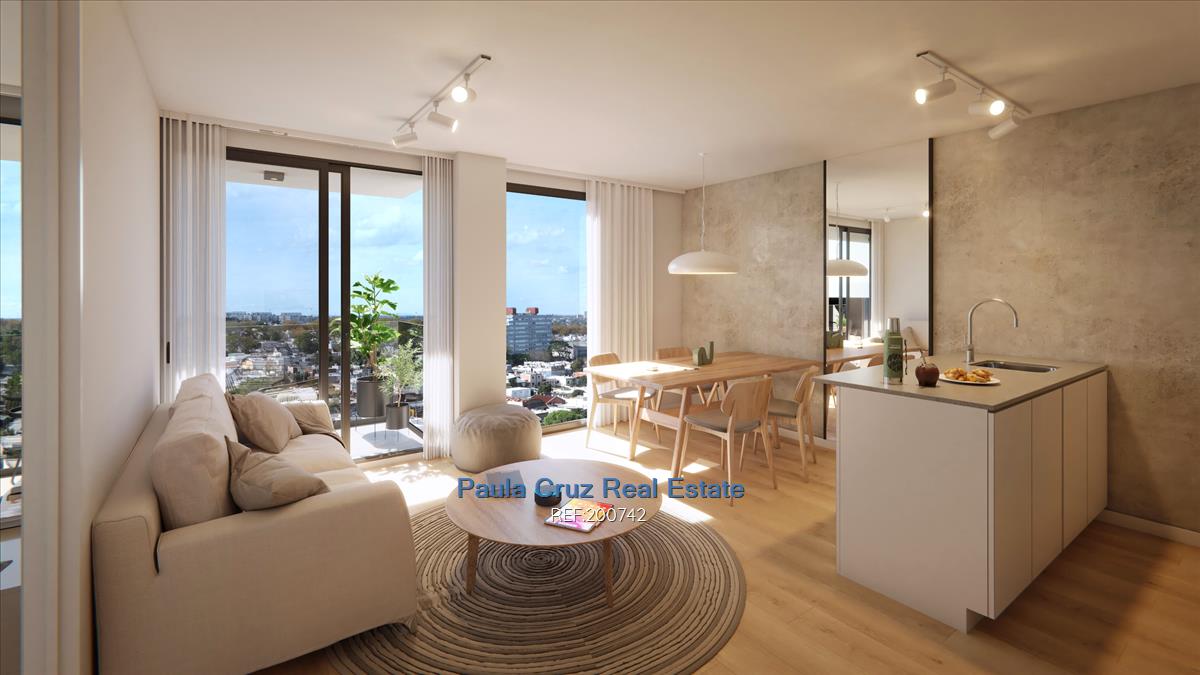 Luminoso living comedor con salida a terraza, cocina integrada con predisposición para anafe, 1 dormitorio, baño completo con artefactos sanitarios y griferías de primera calidad.