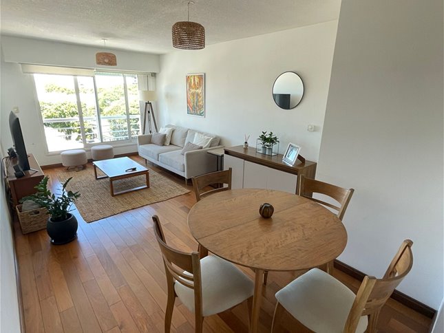 Venta de apartamento en Pocitos límite con Parque Batlle, ubicado sobre Avenida Luis Ponce y Palmar.Edificio de categoría, inmejorable construcción y ubicación.Piso alto con vista súper despejada al contrafrente.Living amplio muy soleado con cocina semiintegrada y barra de madera (pasaplatos), equipada con anafe, horno y campana extractora, placares aéreos y bajo mesada.Un dormitorio amplio con salida al balcón, placares y baño completo.El apartamento cuenta con loza radiante y aire acondicionado.Superficie de 45 metros cuadrados con balcón.Gastos comunes de $6500 a $7000.El edificio cuenta con portería 24 horas, limpieza de áreas comunes, barbacoa amplia y equipada, piscina y laundry.El destino puede ser para vivienda y/o consultorio.