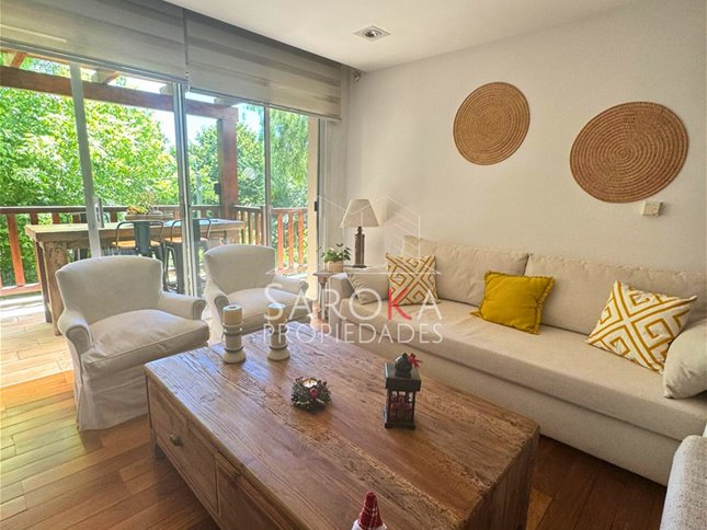 Excelente apartamento, amplio y muy luminoso, ubicado en una de las zonas más lindas y consolidadas de Carrasco, dentro del Edificio Oak Park, a pocos metros de Av. Arocena.La propiedad ofrece un cómodo living comedor con salida a una generosa terraza con parrillero y vista despejada. Toilette de recepción. Cocina definida, equipada con anafe, horno y campana, con lavadero independiente.Cuenta con tres dormitorios, todos con amplios placares, siendo el principal en suite. Pisos de madera en toda la planta, que aportan calidez y elegancia a los ambientes.Dispone de dos garajes individuales y box.Sistema de calefacción por losa radiante eléctrica, estufa a leña y aires acondicionados split. El edificio ofrece excelente seguridad 24 horas, con circuito cerrado de cámaras, portones eléctricos peatonal y vehicular, rejas perimetrales y sistema de alarma.Comodidades de la propiedad* Box / Depósito* Dos garajes individuales* Calefacción por losa radiante eléctrica* Parrillero propio* Placares en todos los dormitorios* Balcón / Terraza* Terraza con área de lavadero* Aire acondicionado (splits)* Lavadero independiente* Amplio living comedor