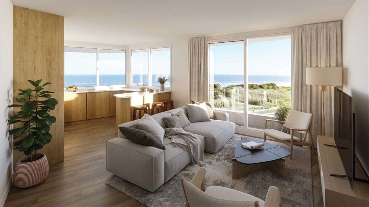 45 apartamentos de 1, 2 y 3 dormitorios, de amplios metrajes y todos con vistas al mar.