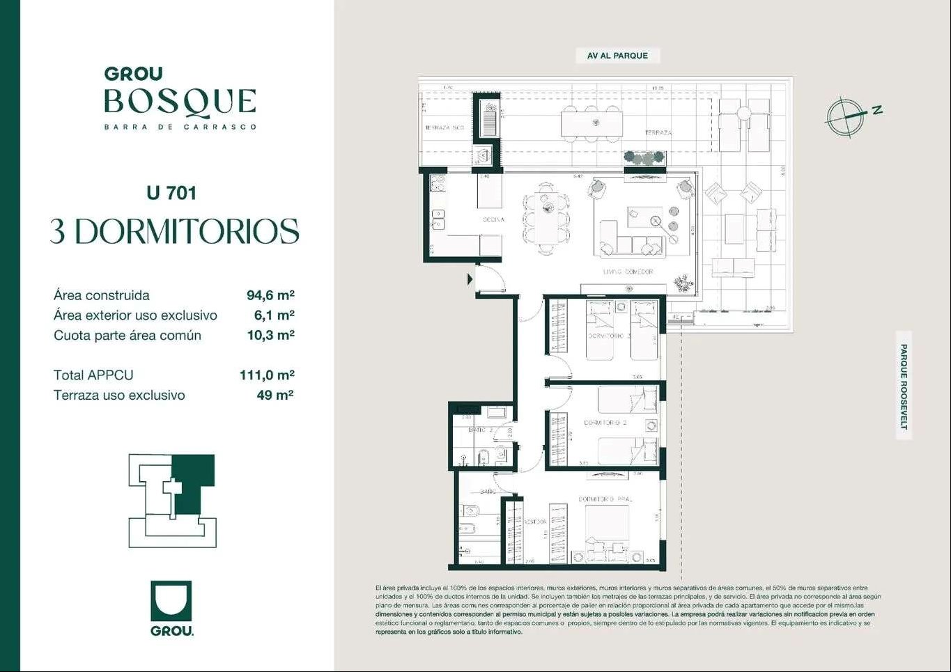 Grou Bosque apartamento 3 dormitorios 2 baños amenities